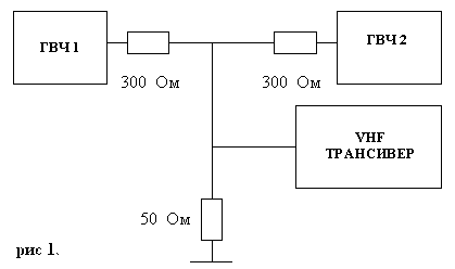 Автором были измерены интермодуляционные характеристики нескольких радиостанций разных производителей. Для этого была собрана схема из двух генераторов, изображенная на рис.1.