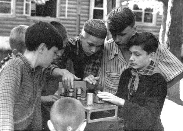 Занятия в радиокружке пионерского лагеря «Поречье» (50-е годы)
