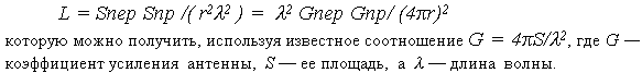 Pпр = Рпер Sпр/S, где Sпр — площадь приемной антенны. Следовательно, потери на линии связи составят:
