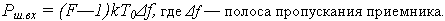 Для оценки интенсивности собственных шумов приемника обычно пользуются единицами kT0. Здесь k — постоянная Больцмана (1,38*10 -23 Дж/град), а T0 — температура окружающей среды (около 300 К). Таким образом, 1 kT0 = 4*10-21 Вт/Гц. Термин “интенсивность” в данном случае применяется потому, что данная единица характеризует не просто приведенную мощность входных шумов, а мощность, отнесенную к полосе пропускания. Это очень удобно, так как не надо каждый раз оговаривать полосу пропускания приемника, как это потребовалось бы при оценке шумов в единицах мощности — ваттах. В этом смысле еще больше неудобств доставляет пользование единицами напряжения — микровольтами, так как в данном случае надо еще указывать входное сопротивление приемника. Так, например, ответить на вопрос, какой приемник лучше — имеющий чувствительность 1 мкВ или 2 мкВ, можно только после того, как будут оговорены входные сопротивления и полосы пропускания данных приемников. Единица kT0 имеет строго определенный физический смысл — такие тепловые шумы генерирует активное сопротивление, нагретое до температуры T0. Если сопротивление, равное входному, подключить ко входу идеального приемника, то мощность шумов, приведенная ко входу, будет равна 1 kT0. В реальном приемнике к шумам внешнего сопротивления добавятся собственные шумы, поэтому чувствительность реального приемника всегда больше 1 kT0. Числовой коэффициент, стоящий перед kT0, называется коэффициентом шума приемника. Он обозначается буквой F. Мощность собственных шумов приемника, приведенную ко входу, можно определить, пользуясь формулой: