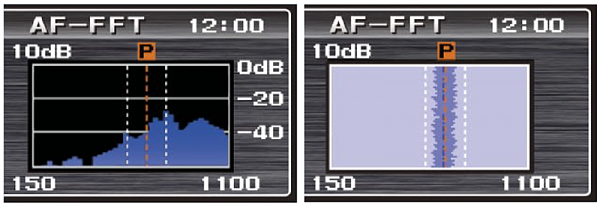 После того, как будет установлен дополнительный модуль FFT-1, в трансивере появится функция отображения НЧ характеристик сигналов приема/передачи, которая выводится на отдельное окно AF-FFT ЖК-дисплея трансивера.