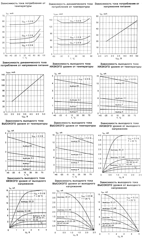 | 3 | Выходной ток низкого уровня (IOL) при Uo = 0,5 В   выводы 20,21   выводы 2,3,46   выводы 10,11   выводы 4,23,25-28,30-41,43,44   выводы 7-9 |