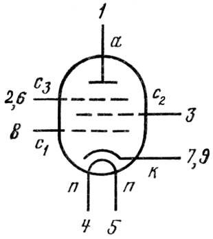 п - подогреватель катода.