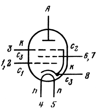 п - подогреватель катода.