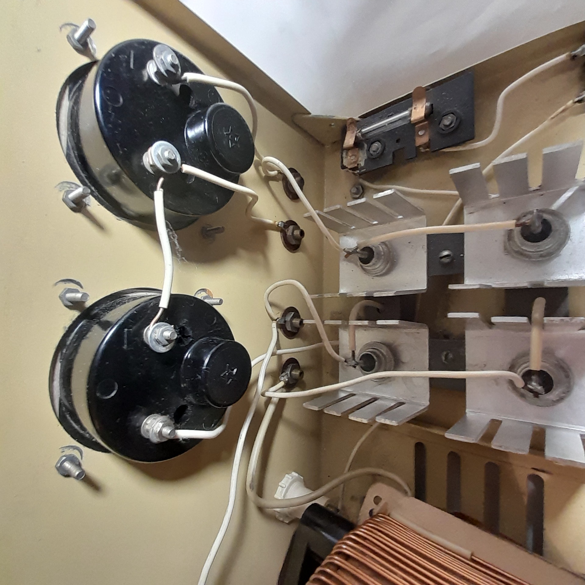 МоскваТрансформатор сетевой от аппарата УВЧ-80. . Сетевая обмотка имеет 4 отвода для компенсации отклонений сетевого напряжения. Габаритная мощность транса ок. 100 вт, вес 2, 5 кг., фото 1, 2, 3 Схема второго трансформатора от УВЧ-80 с другими лампами показан на фото 4. Он с такими же габаритами, весом ...
