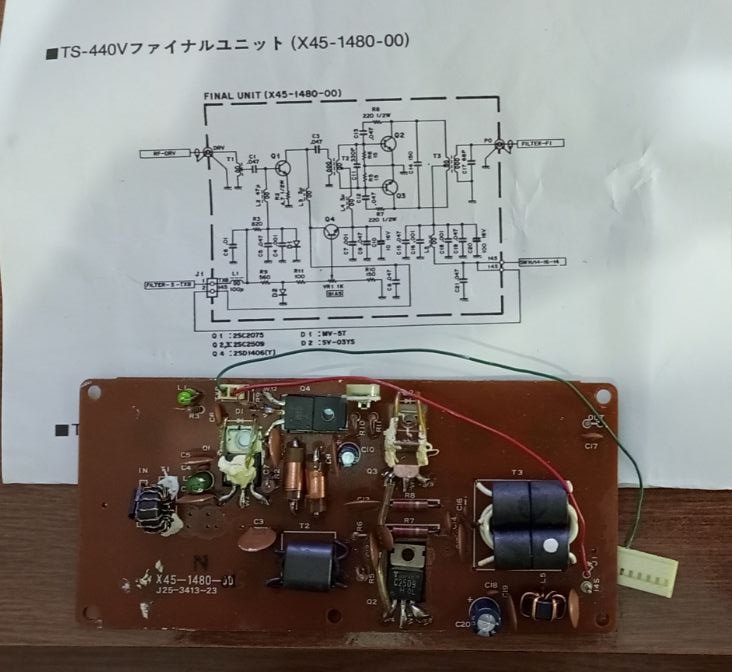 ТаловаяМощность на выходе 190-200 ватт, входная 8-10 ватт. Смонтирован блок подачи напряжения смещения на базы транзисторов. Все виды работы, в том числе SSB, все диапазоны. Управление педалью, трансивером (РТТ)