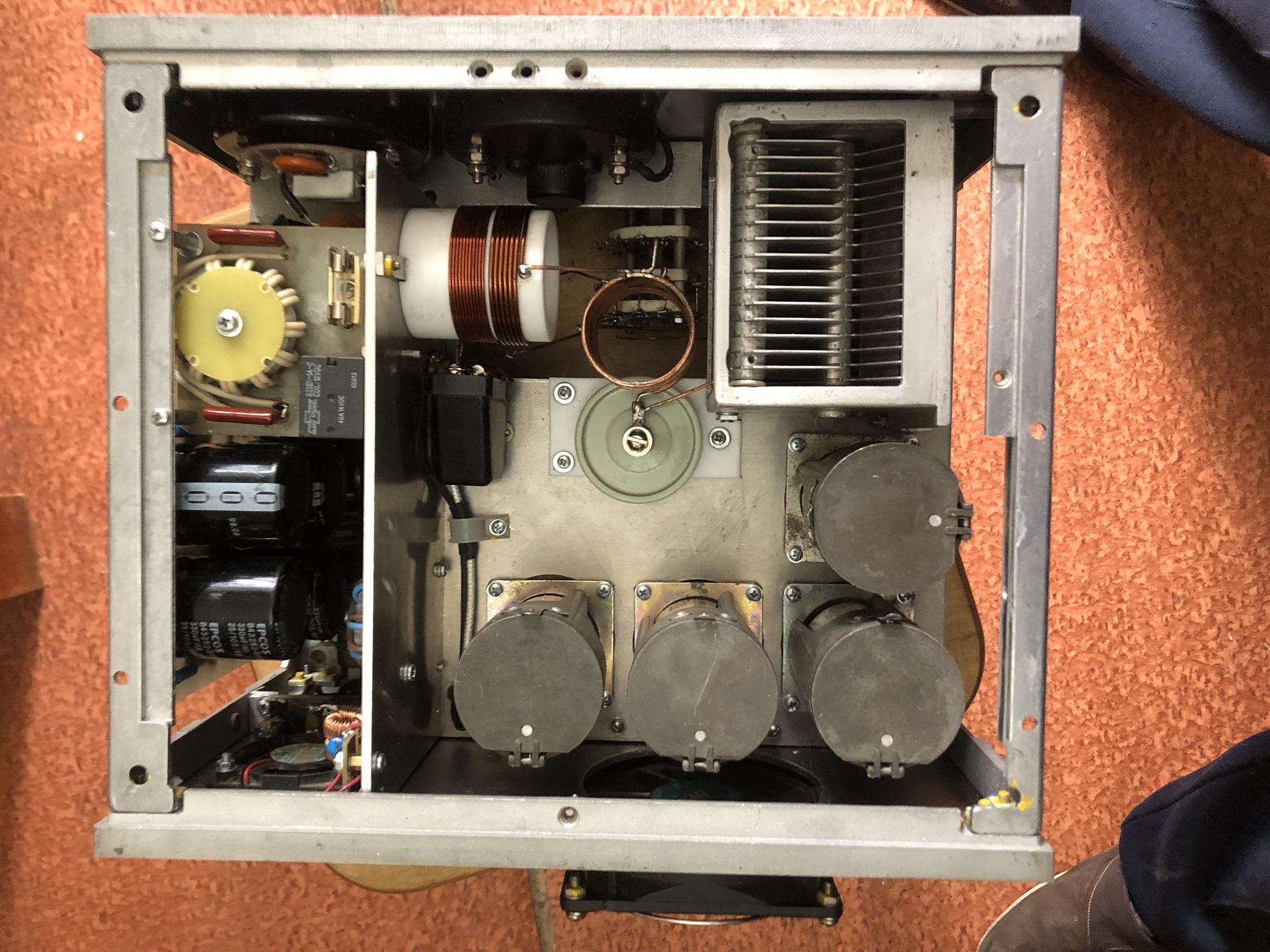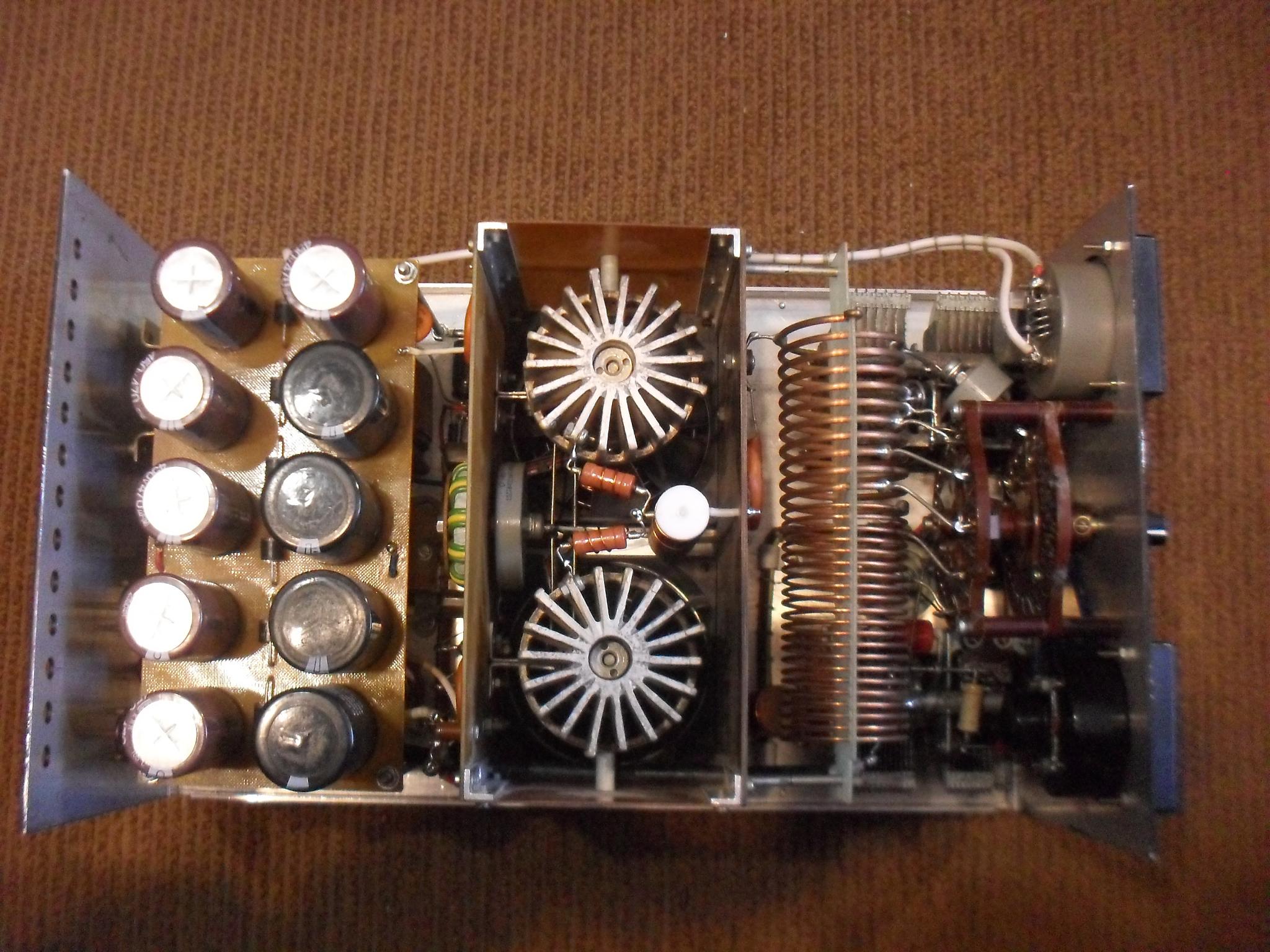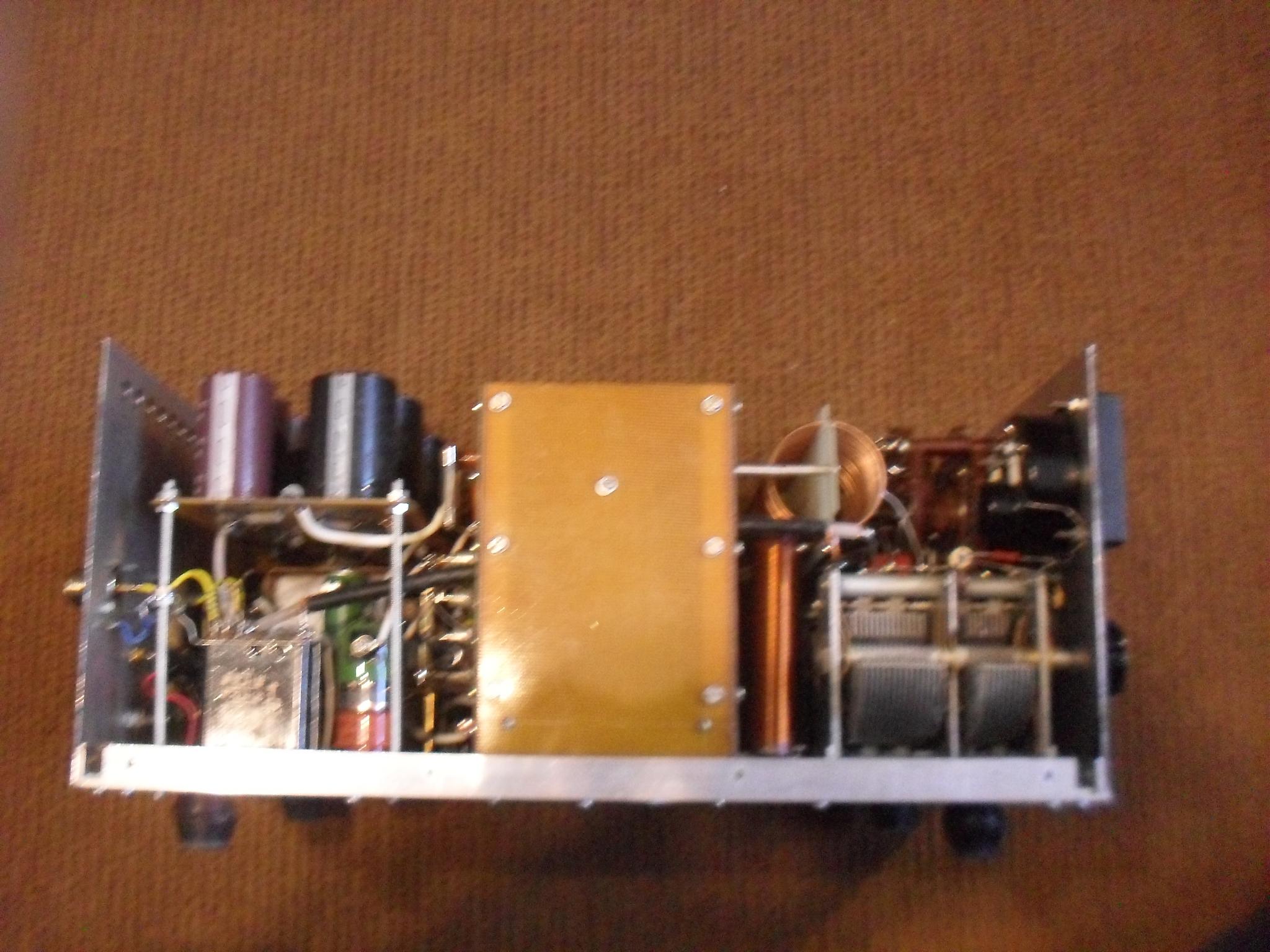 МоскваИзначально аппарат делал не я. Усилитель работал на ГС-35Б пока лампа не кончилась. Я поставил ГС-31Б то, что есть. Поставил плату защиты и стабилизации по схеме G3SEK. После модернизации усилитель не использовался. Анодный БП трансформаторный однофазный в отдельном корпусе, на выходе около 2600 в ...