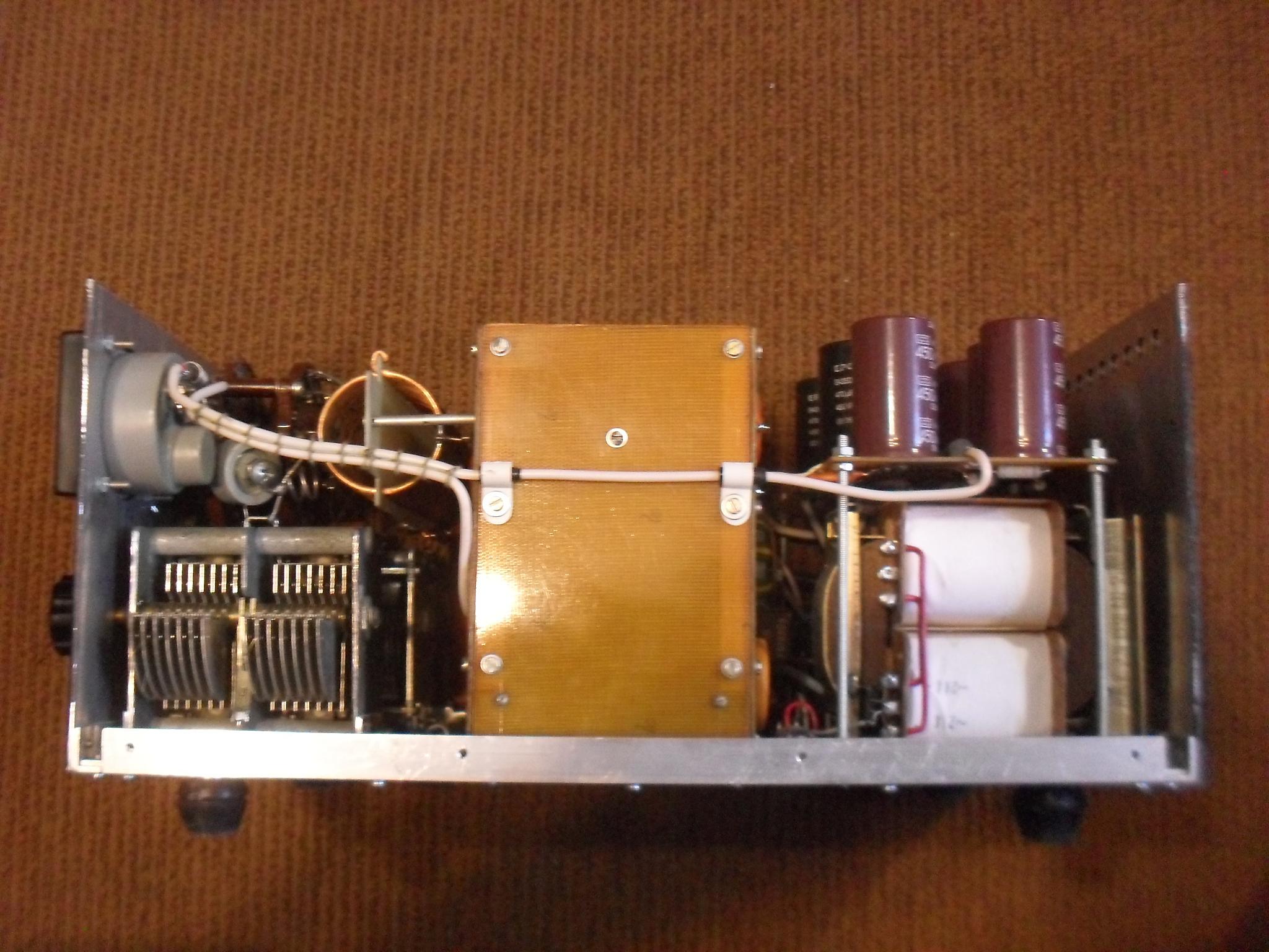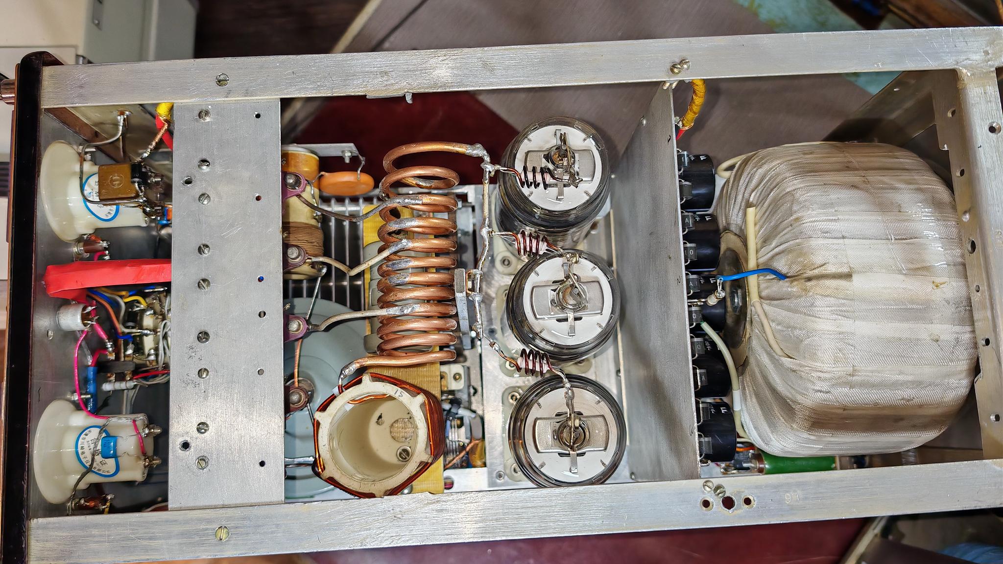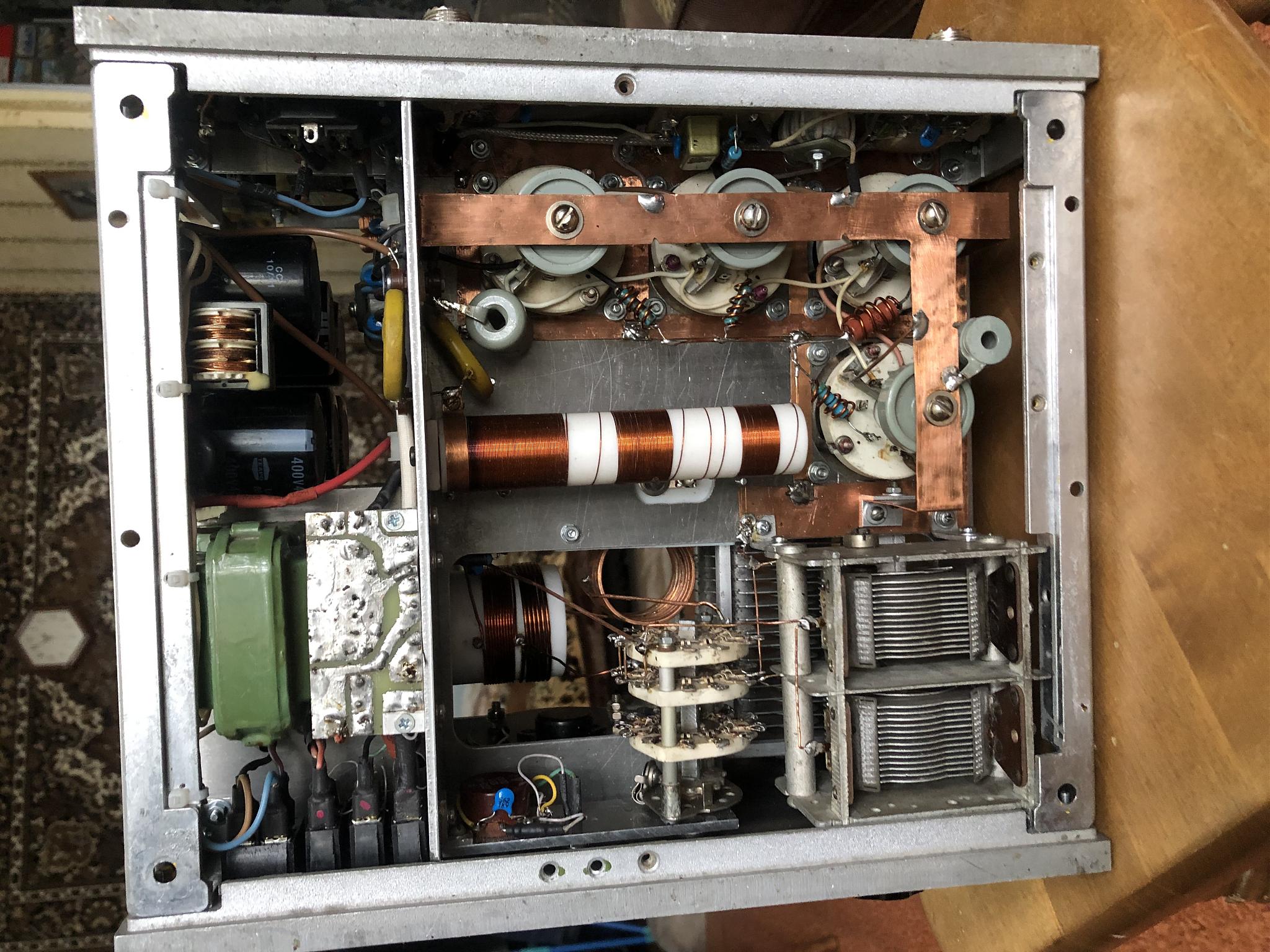 МоскваИзначально аппарат делал не я. Усилитель работал на ГС-35Б пока лампа не кончилась. Я поставил ГС-31Б то, что есть. Поставил плату защиты и стабилизации по схеме G3SEK. После модернизации усилитель не использовался. Анодный БП трансформаторный однофазный в отдельном корпусе, на выходе около 2600 в ...