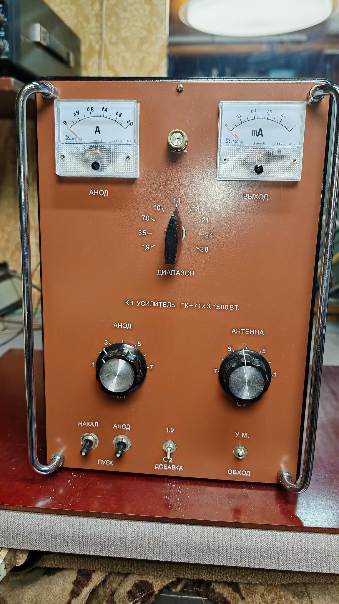 ЕфремовПродам усилитель от р-140 (бмз) на лампе гу-43б. Однофазное питание. Есть защита по экранной сетке и аноду. Пульт управления (включение, выключение усилителя, переключение диапазонов, контроль тока анода и антенны. Усилитель на гу-78б будет в мае месяце. Возможна переделка Вашего усилителя от р-14 ...