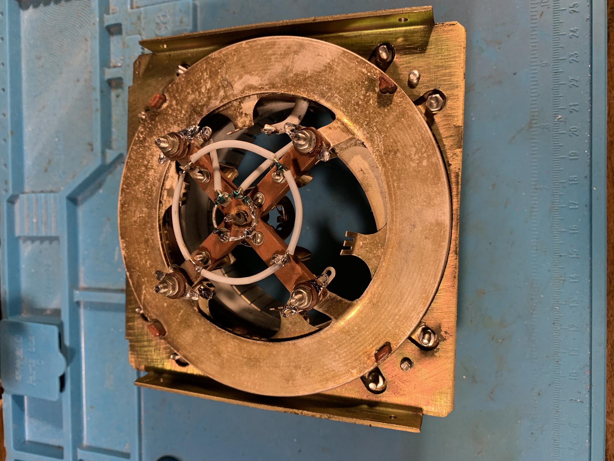 Симферопольпеременная индуктивность для 1кВт усилителя мощности переключение осуществляется шаговым двигателем ШД-300/300-А, 18-положений, максимальная индуктивность = 166, 5мкГн, минимальная =1, 3мкГн.. Индуктивность выполнена ленточным кабелем на 4-х кольцах диаметром 75мм толщина 10мм Вся градация индуктив ...