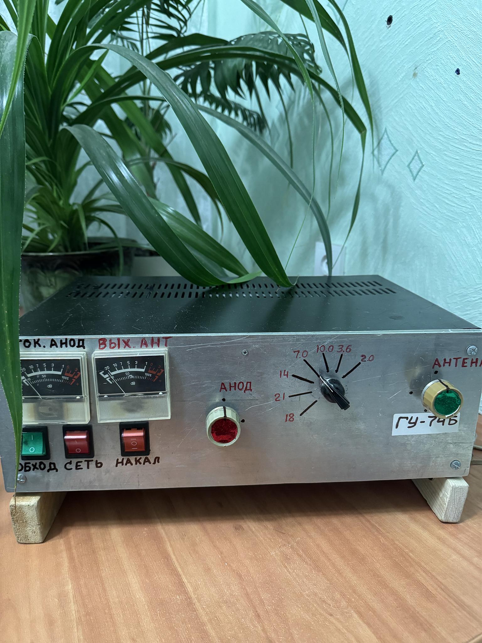 КурскаяПродам усилитель на двух ГУ74Б с общими катодами. С блоком питания в одном корпусе. Вес 37 кг. Надежен в многолетней работе. Лампы не просажены с нормальной эмиссией. Ручная регулировка тока покоя. Лампы в паспортных режимах. Коммутация прием-передача вакуумными реле, диапазонов - хлопушками. Ток ко ...