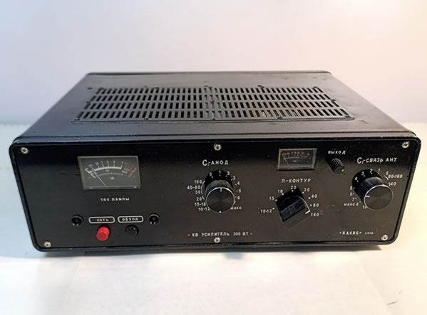 КурскаяВыполнен на одной лампе, трансформатор похож на TCA300 напряжение обмоток не известно. Вход широкополосный 20-30Вт. Выход: судя по лампе и трансформатору до 300Вт, пробовал 100Вт выхода при 10Вт входа. Выполнен аккуратно, обдув очень тихий. Вес 14кг. Больше не чего не знаю, попросили продать. Отпр ...