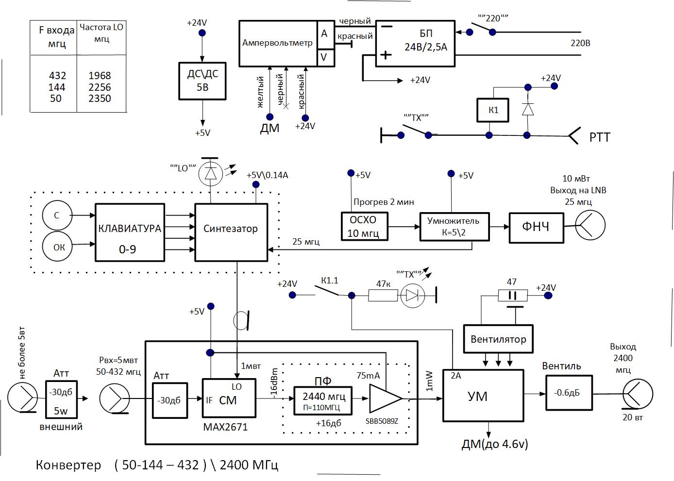 МайкопКонвертер линейный на разные частоты для переноса на 2400 мгц (50-144-432/2400), опорный генератор ОСХО 10МГц, макс. выход 20 вт c защитным вентилем, вход не более 5мВт ( с доп. 30 дб внешним аттенюатором не более 5 Вт), собран из промышленных узлов, понижающий аттенюатор 30 дб в комплекте, есть в ...