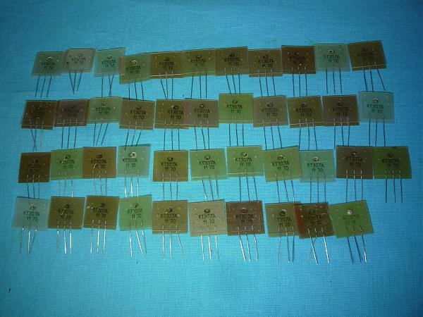 Раритетные бескорпусные сверхминиатюрные транзисторы нач. 70-х г. г. пр-ва СССР новые. На фото №1 транзисторы КТ307А до 300 мгц в кол-ве 43 шт по 200р за шт. На фото №2 транзисторы без маркировки в кол-ве ок. 100 шт, в корпусе 2 транзистора. На фото №3 также тр-ры без маркировки, их ок. 20шт. и тоже по 100р за шт. Все выводы от кристалла золотые.