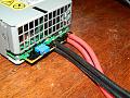 Выходной минус у блока на корпусе.