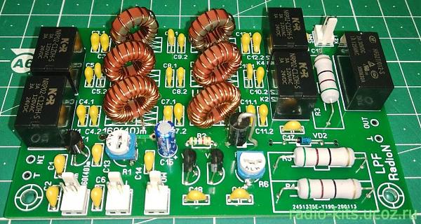 Плата фильтров низкой частоты (ФНЧ) 160/80/40 м, измерителя КСВ с выходом автоматической регулировки уровня (ALC) для TRX "RadioN" на кольцах Амидон