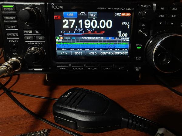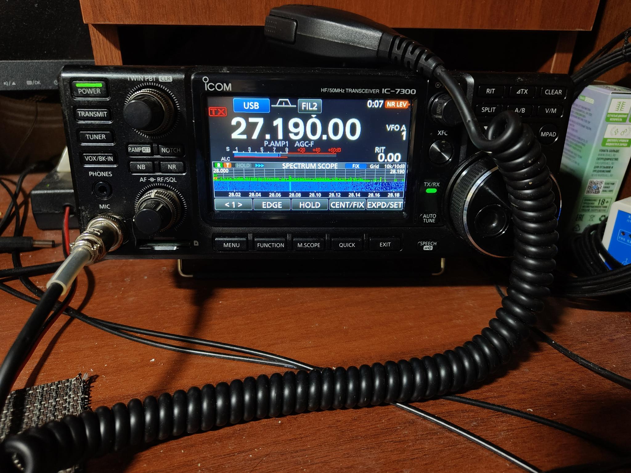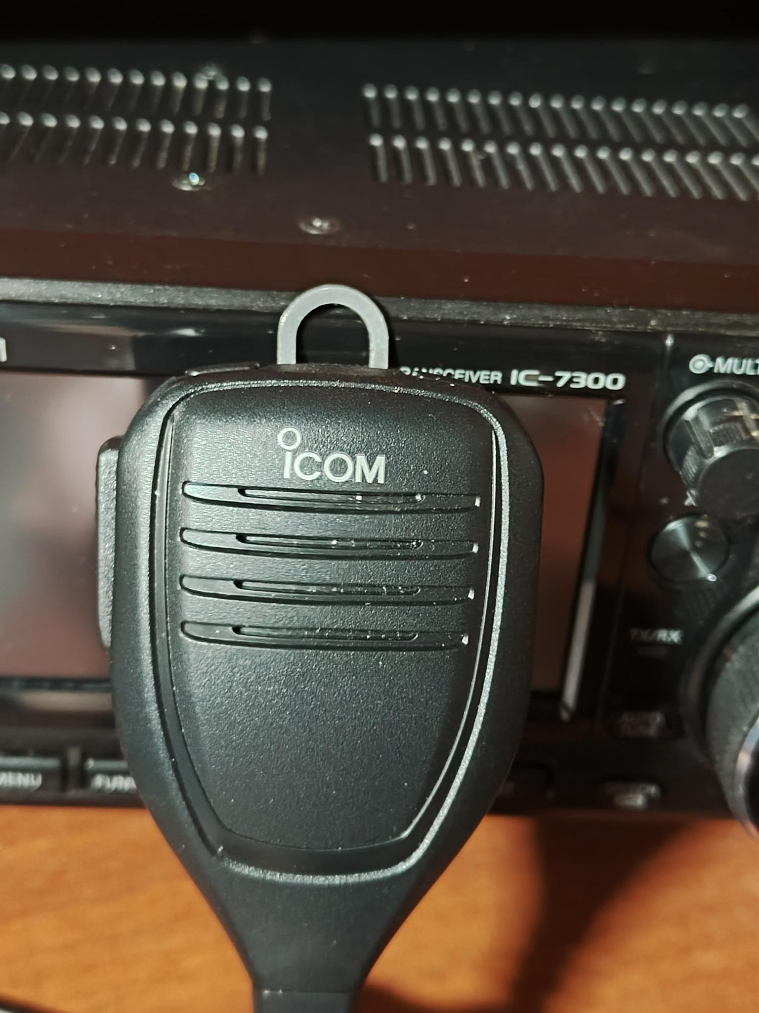 ICOM IC-7300 (раскрыт на передачу, заменена батарейка. прошивка актуальная; комплектом уличный антенный тюнер ICOM AH-4 и фильтр в кабель питания).
