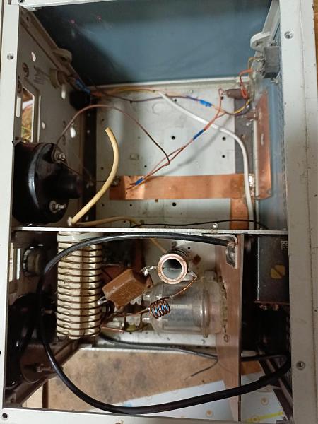 Корпус из какого-то прибора. Там частично произведен монтаж усилителя мощности на одной лампе ГУ 29. А именно выходной контур, сама лампа, установка реле. Блока питания нету.