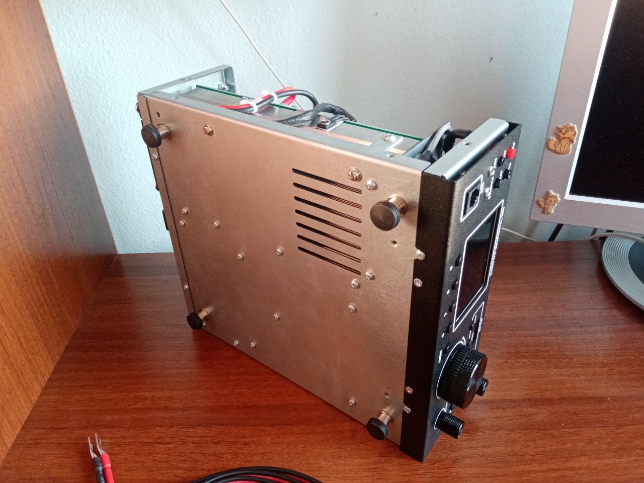 Malamute 100 Ватт, первый вариант (не M2). Выходной каскад на двух транзисторах RD100HHF1, в драйвере для выходного каскада два RD16HHF1. Автотюнер 7*7 по схеме N7DDC. Заводской корпус В=93 Ш=237 Г=262 мм. Вес 4, 5 кг. Все виды модуляции: LSB, USB, AM, FMW, FMN, RTTY, CWL, CWR. Интерфейс USB CAT - работа в цифровых видах связи. Линейный вход через jack 3. 5. Гнездо для ключа CW jack 3. 5. Гнезда jack 3, 5 для отдельного микрофона и наушников. Управление внешним УМ через разъем TX/PA. Управление трансивером с подключением педали "прием/передача" через разъем PTT. Защита от переполюсовки питания. Разъем питания XT60. Гнездо предохранителя 20 Ампер. Потребляемый ток в режиме ТХ при мощности 100 Вт около 14-15 Ампер напряжением 13, 8 Вольт.