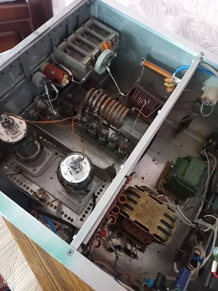 У М. на 2 х -Г К - 71 по входу контура, последовательное питание, блок питания в отдельном корпусе, 3100 на аноде около 1000 вт.