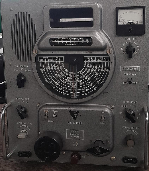 Радиоприемник судовой Волна -к. В рабочем состоянии переделкам не подвергался, рабочая документация имеется.