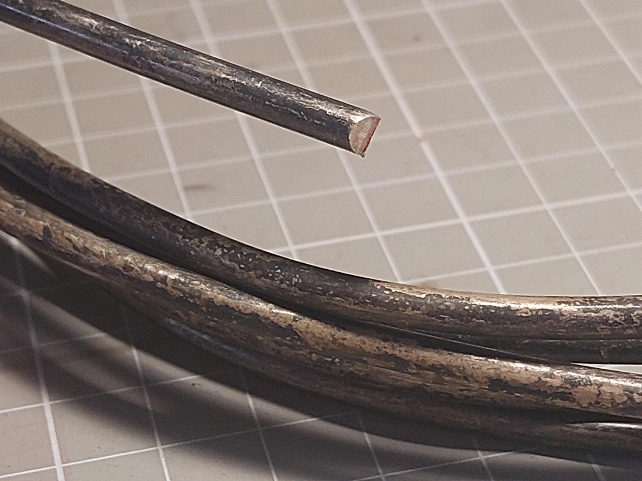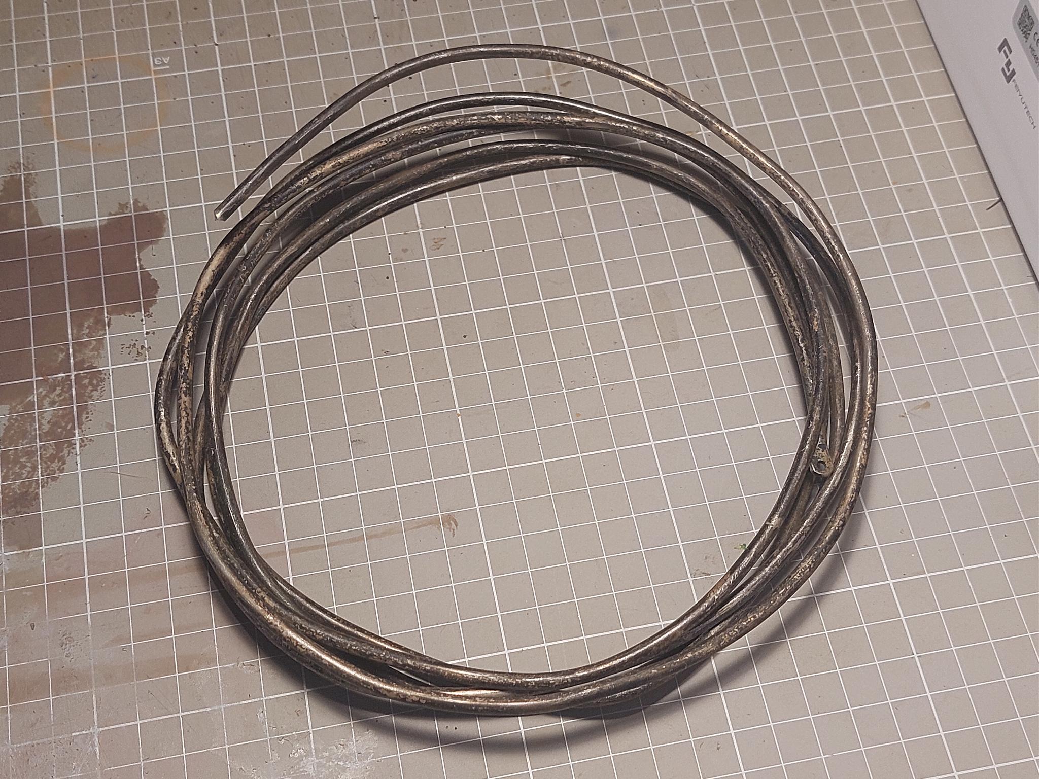Медный посеребренный провод диаметром 4 мм. Длина 295 см. Цена за весь кусок.