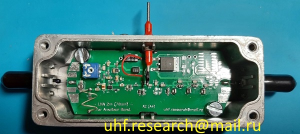 МоскваBand - 144.. . 146MHz Gain - 28dB NF - 0. 76dB Rin/Rout - 50 Ohm U - 8. 5.. . 13. 6V I - 84 mA Dim. (mm) - 115x70x23 (с учетом выступающих частей) Material - "Arlon" В корпусе с N - разъемами - 3000 руб. Без корпуса, с установленными) SMA-разъемами - 2300 руб.