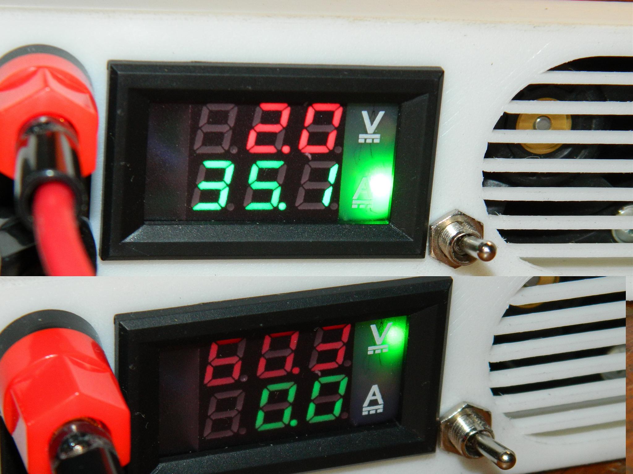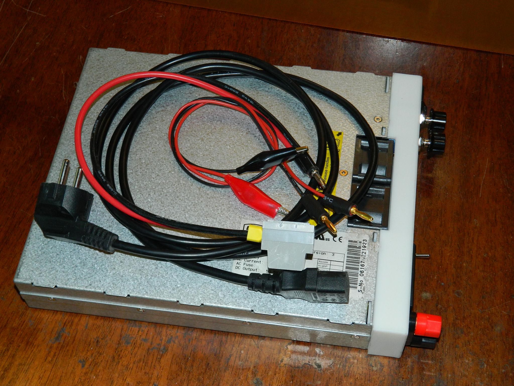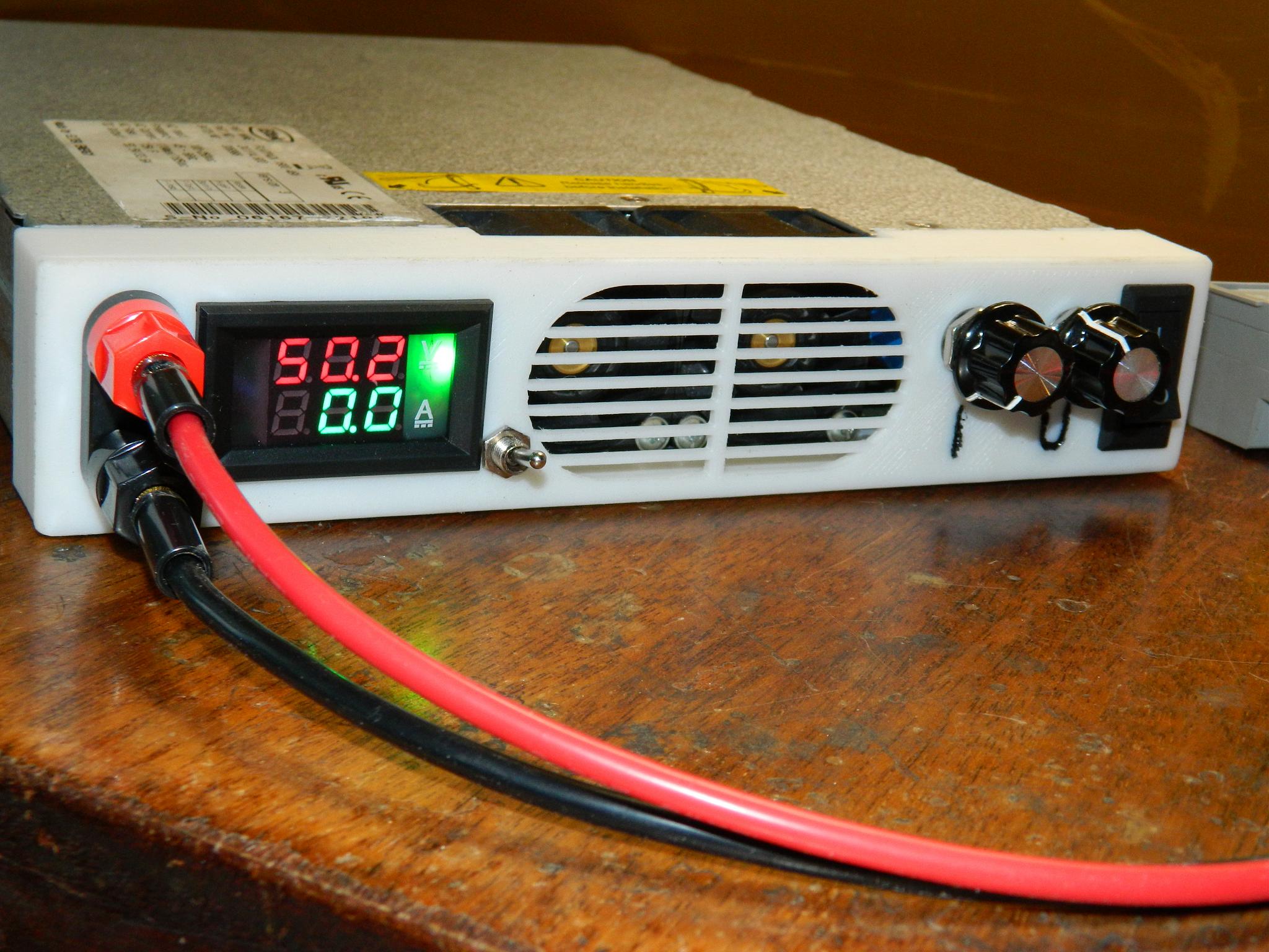 КрасногвардейскоеБлок питания Flatpack 1800 переделан под регулируемый 5-55 Вольт 2-30 Ампер. На передней панели есть сетевой выключатель и выключатель выходного напряжения. В вольтамперметр встроены светодиоды которые указывают по чем блок ограничивает выход - по току или по напряжению, на фото получилось не очень ...