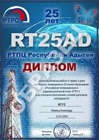 - с юбилейной радиостанцией РТРС RT25AD (обязательное для диплома QSO) – 5 очков;