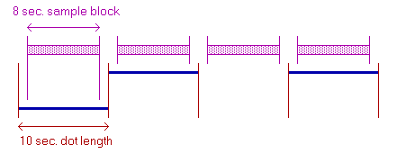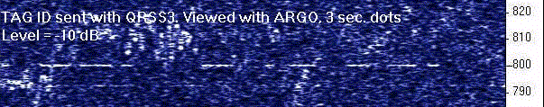 Видно, что существенное улучшение соотношения сигнал-шум может быть достигнуто при редуцированном CW режиме приближенном к непрерывной несущей. В диапазоне 136 кГц стандартом стал 3 sec./dot (длительность одной точки 3 сек.). Такой режим получил название QRSS (производное Q-кода, слово QRS - пожалуйста уменьшите скорость передачи).