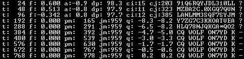 В течении приема первого пакета WOLF будет производить быструю настройку декодирования сигнала после 24, 48 и 96 секунды основного пакета (фрейма). Если уровень принимаемого сигнала достаточен для успешного декодирования, то оно происходит в течении первого настроечного интервала времени. В течении первых настроечных интервалов выдается различная информация: