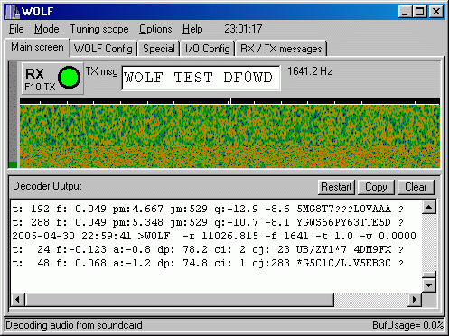 Напоминаем что WOLF может успешно декодировать принимаемые сигналы при отношении сигнал/шум (в канале данных) от -5dB или лучше.