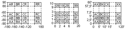 Весь земной шар разбит на 324 сектора которые обозначаются двумя БОЛЬШИМИ буквами латинского алфавита и имеют следующие размеры: