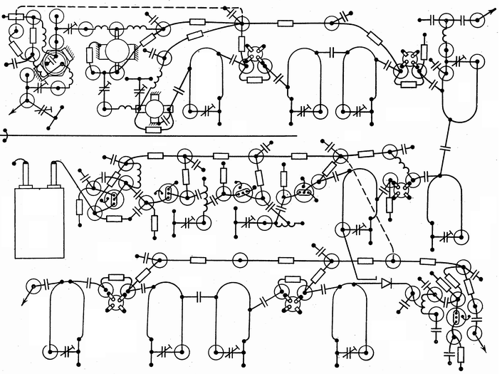 Катушка 2L13 бескаркасная, намотана посеребренным проводом 0,8 мм на оправке диаметром 7 мм. Длина намотки 7 мм, число витков четыре. Отвод для связи с коллектором транзистора 2Т8 сделан от полуторного витка, а для связи с базой транзистора 2Т9 — от четвертого витка, считая от заземленного конца.