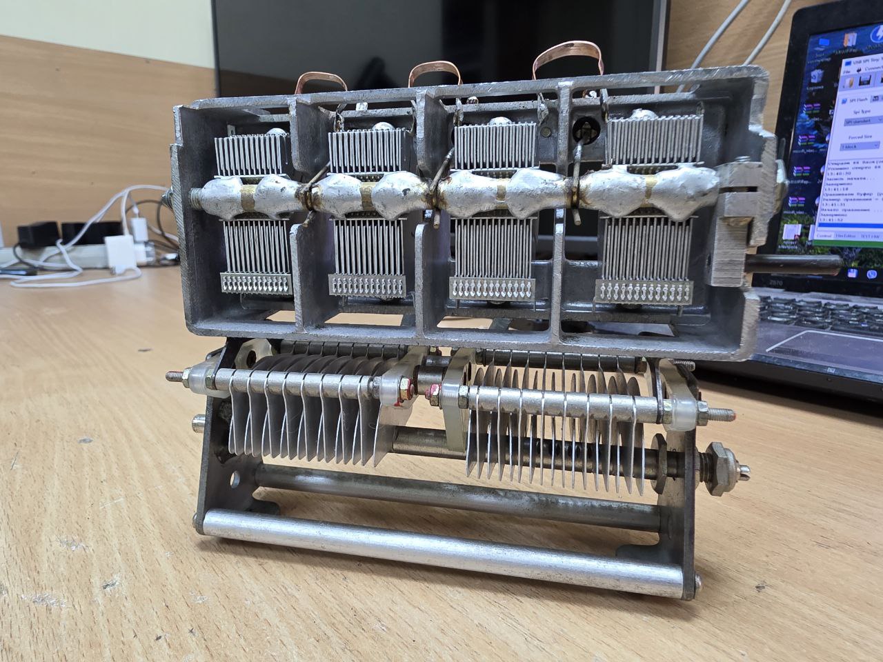 КуровскоеПродам КПЕ (воздушный) для построения ГПД радиолюбительских приемников. Емкость порядка 50пф, посеребренные пластины и позолоченный токосьем, на керамике, подшипники, высокая механическая добротность. Фото реальное, переменный конденсатор допилен до удобоваримого состояния. Отправка почтой.