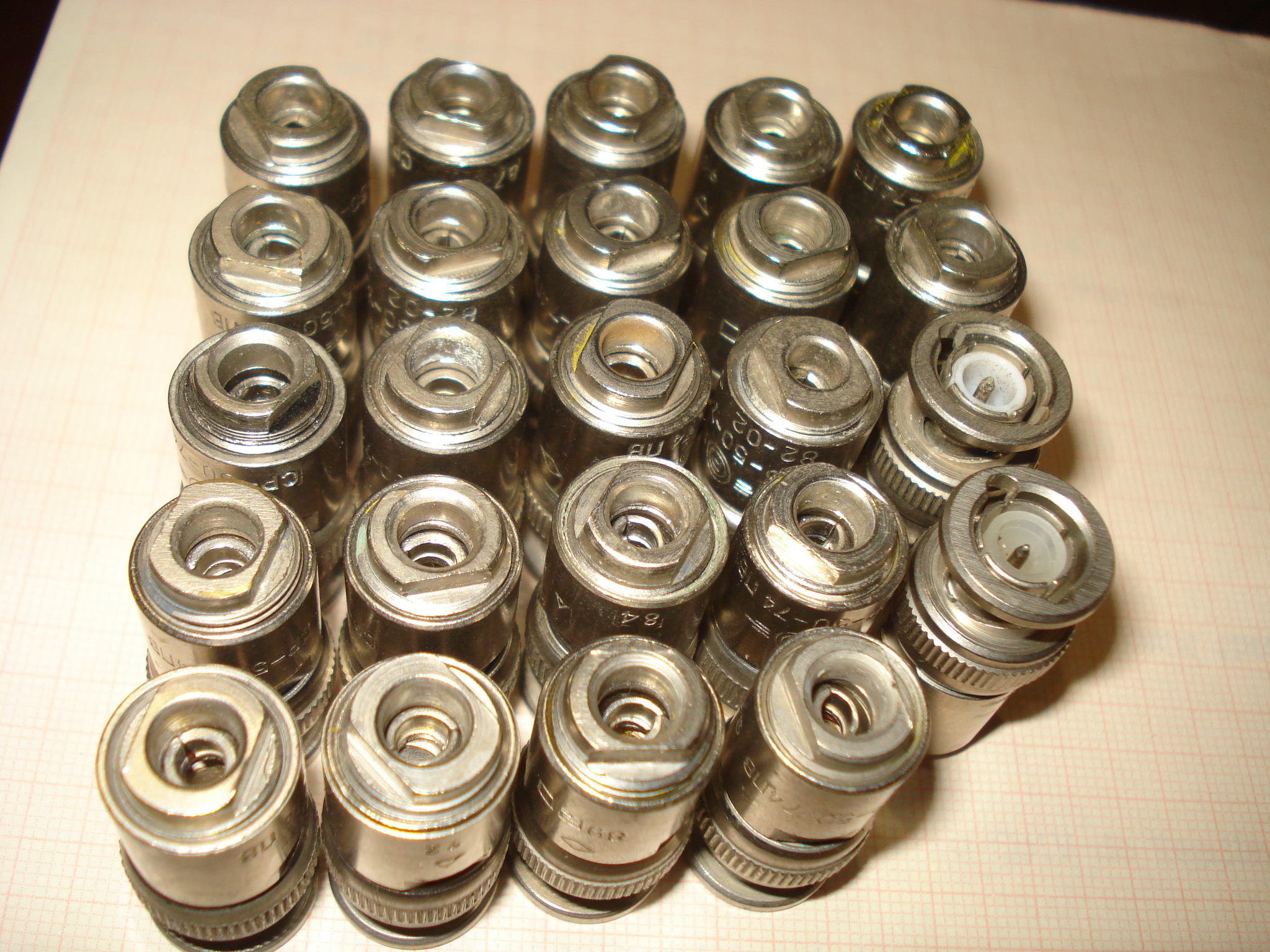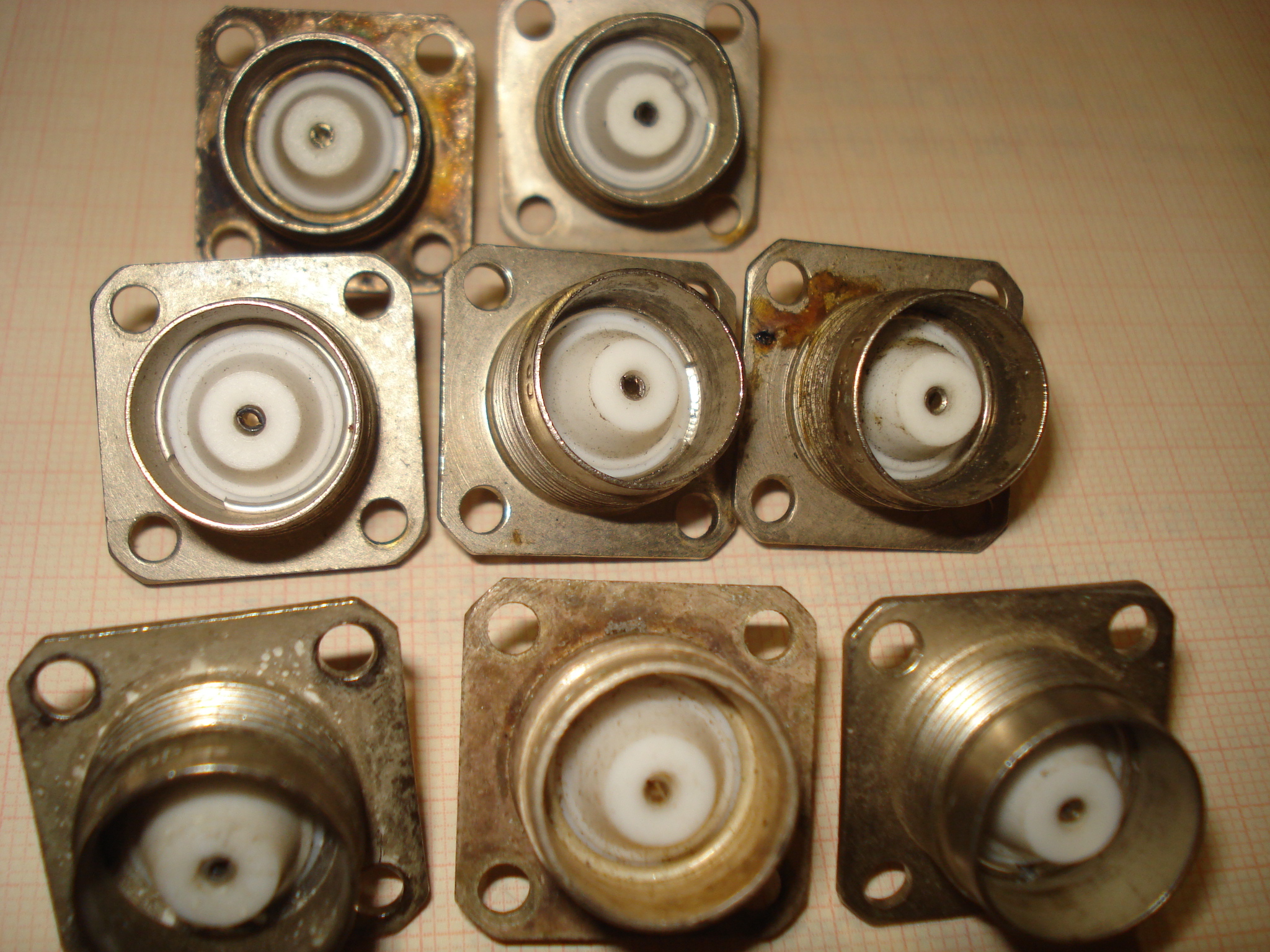 МиассРазъемы БУ. Цена указана за штуку. Наличие необходимого количества уточняйте. 1. Розетка приборная. 20 штук. (20 рублей) 2. Разьем ВЧ. БУ. СР-75-166ФВ -8 штук (20 рублей) 3. Разьем ВЧ. БУ. Чищеный от остатков припоя. СР-50-174ФВ -3 штуки (20 рублей) 4. Разьем ВЧ. БУ. Чищеный от остатков припоя. ...