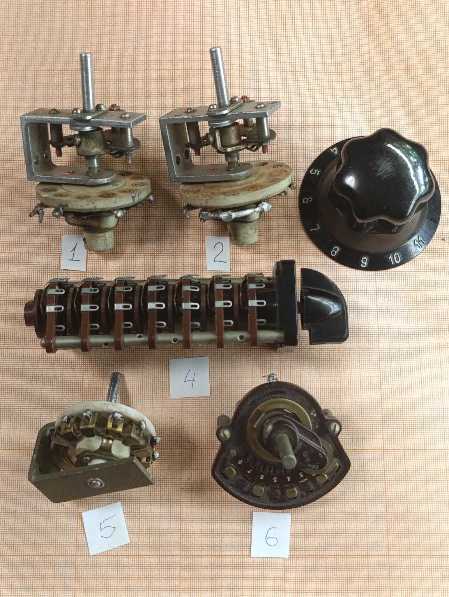 МоскваПереключатели керамические галетные с хранения рабочие. Вналичии 2х и 3х секционные, а так же другие типы. На фото 2 и 3 внешний вид и схема комутации переключателя. Цена зависит от сложности конструкции переключателей.