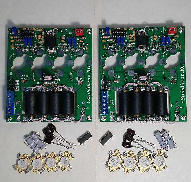 ЛобняПостроение схемы от известного ШПУ фирмы Motorola EB104 с небольшими изменениями и возможной установкой транзисторов: MRF150 – 600Вт в наличие. комплект $300 BLF177 – 600Вт комплект $311 SD2933 – 1000Вт в наличие. комплект $385 VRF2933 – 1000Вт комплект $432’70 Цена, наличие определенных транзи ...