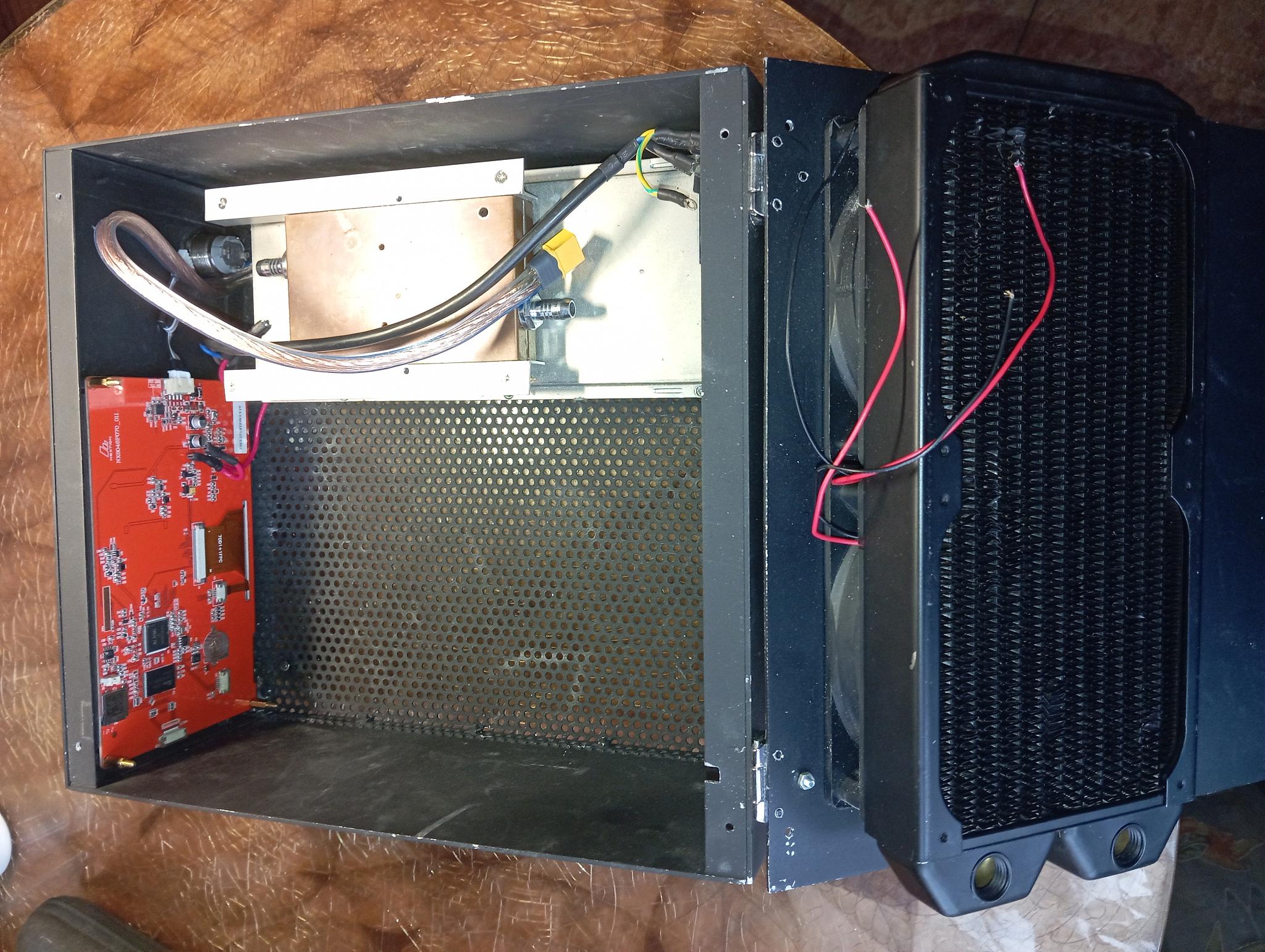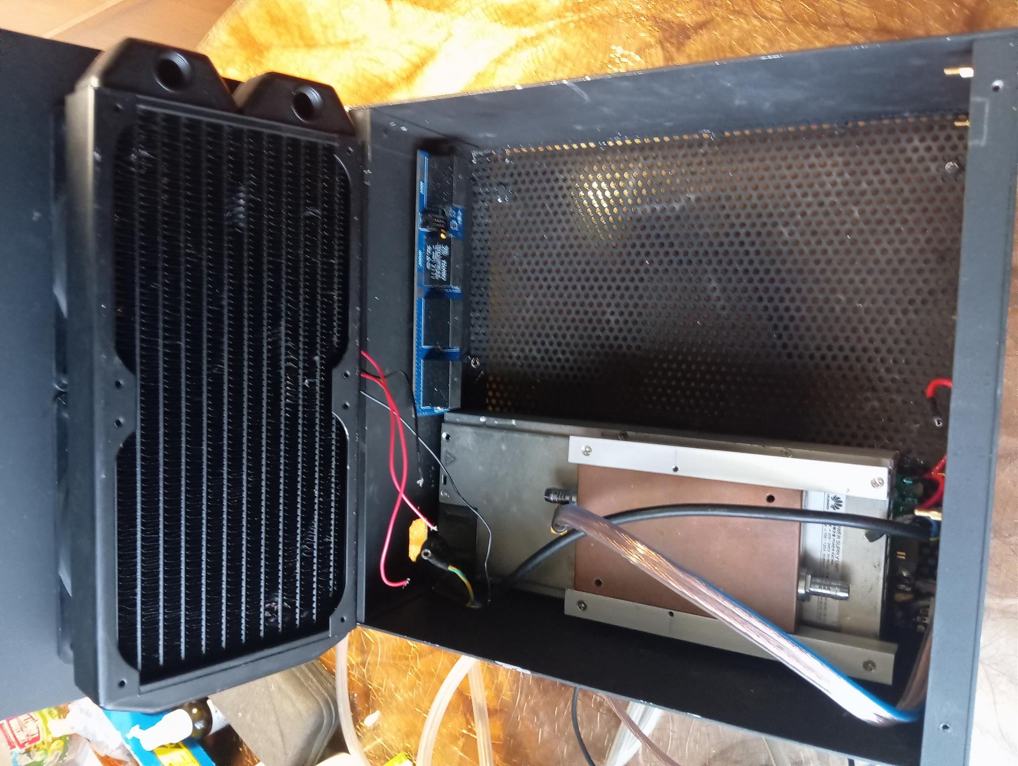 АбдулиноМощность на выходе 190-200 ватт, входная 8-10 ватт. Смонтирован блок подачи напряжения смещения на базы транзисторов. Все виды работы, в том числе SSB, все диапазоны. Управление педалью, трансивером (РТТ)