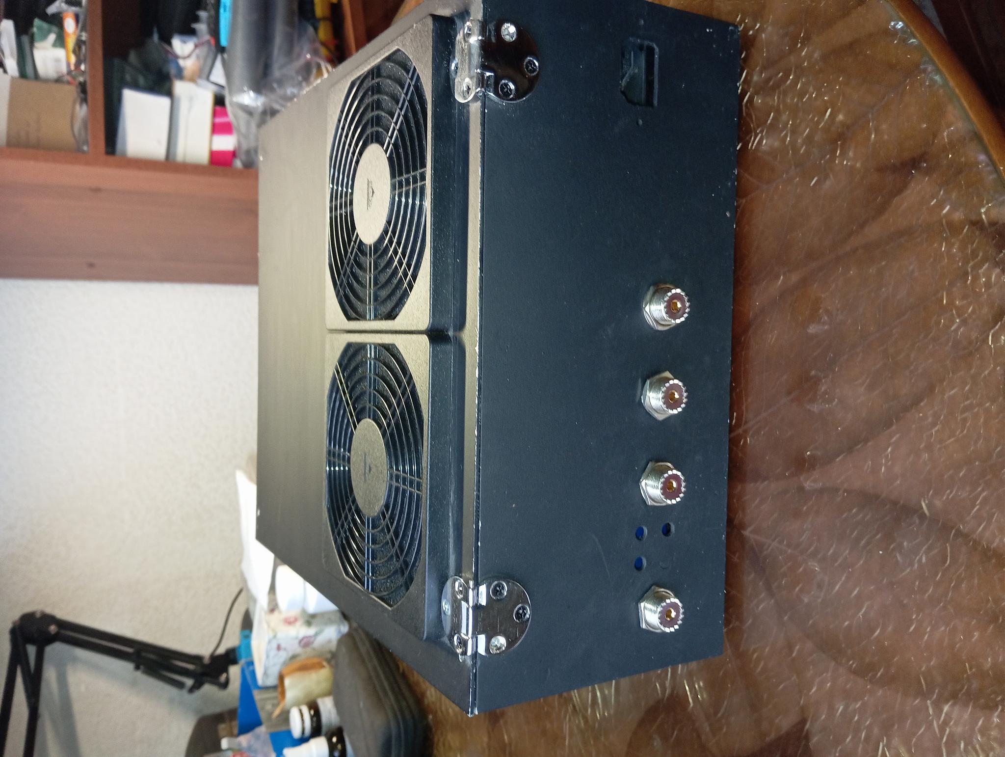 АнапаУсилитель от р-140 (бмз) на лампах гу-43б и гу-78б. Все напряжения внутри блока УМ, кроме высокого напряжения. Трехфазное (однофазное)питание. Есть защита по экранной сетке и аноду. Пульт управления (включение, выключение усилителя, переключение диапазонов, контроль тока анода и антенны. Готовых в н ...