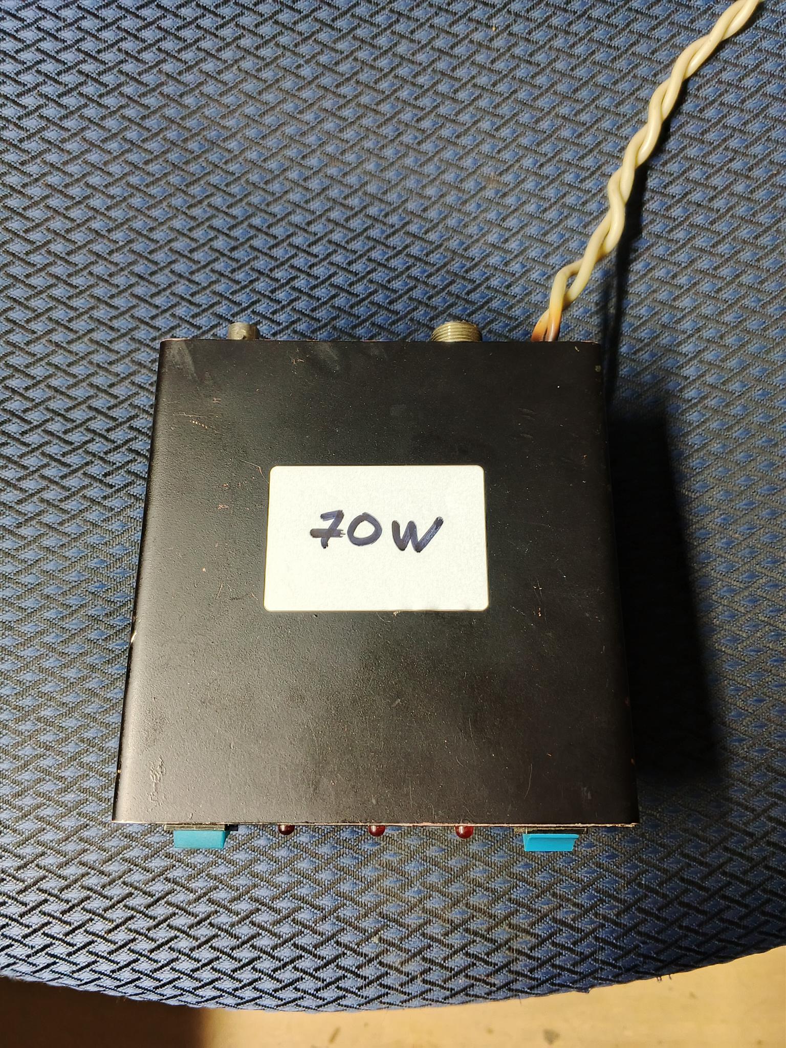 МоскваПродаётся под восстановление усилитель мощности на UHF S-100, 100ватт, подключаемый УВЧ по приёму, регулировка выходной мощности. Отсутствует транзистор первого каскада усиления MRF-842.. Возможны варианты с обменом на автомобильную УКВ радиостанцию с мощностью 50ватт с валкодером.