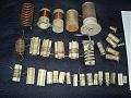 Остатки конструирования мощных УМ. Сверху на керамике: D 50 L110 мм, D 45 L 65мм, D 40 L80 мм, D 40 L65мм.. .. . Всего под 35 шт. В основном ВЧ керамика. На П-контур и на входные фильтра. В придачу 3 анодных дросселя на керамике. Индуктивностью 125, 92 и 75 мкГн. Общий вес около 1, 6.. . 1, 7 кг. Мо ...