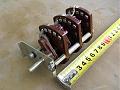 Нижний НовгородТрансформатор, габ. мощность 1. 5 квт. Сердечник броневой на Ш -образных пластинах. Применялся как трансформатор 220 на 127 (110) вольт. Размеры сердечника: ширина стержня пластины 40мм, толщина набора пластин 90мм, ширина пакета 160мм, высота пакета 140мм, окно 92х 40мм. Провод во всех обмотках диа ...