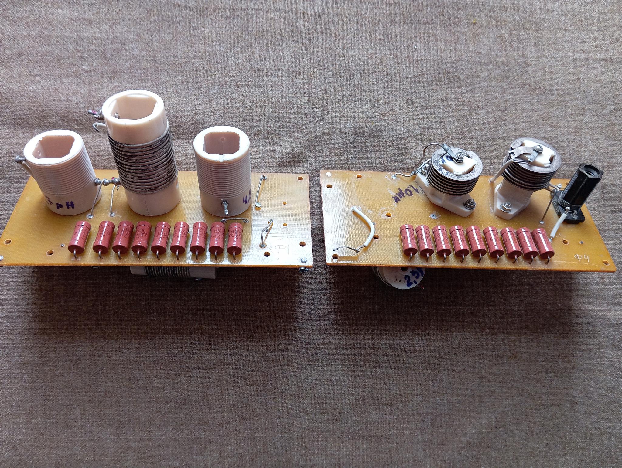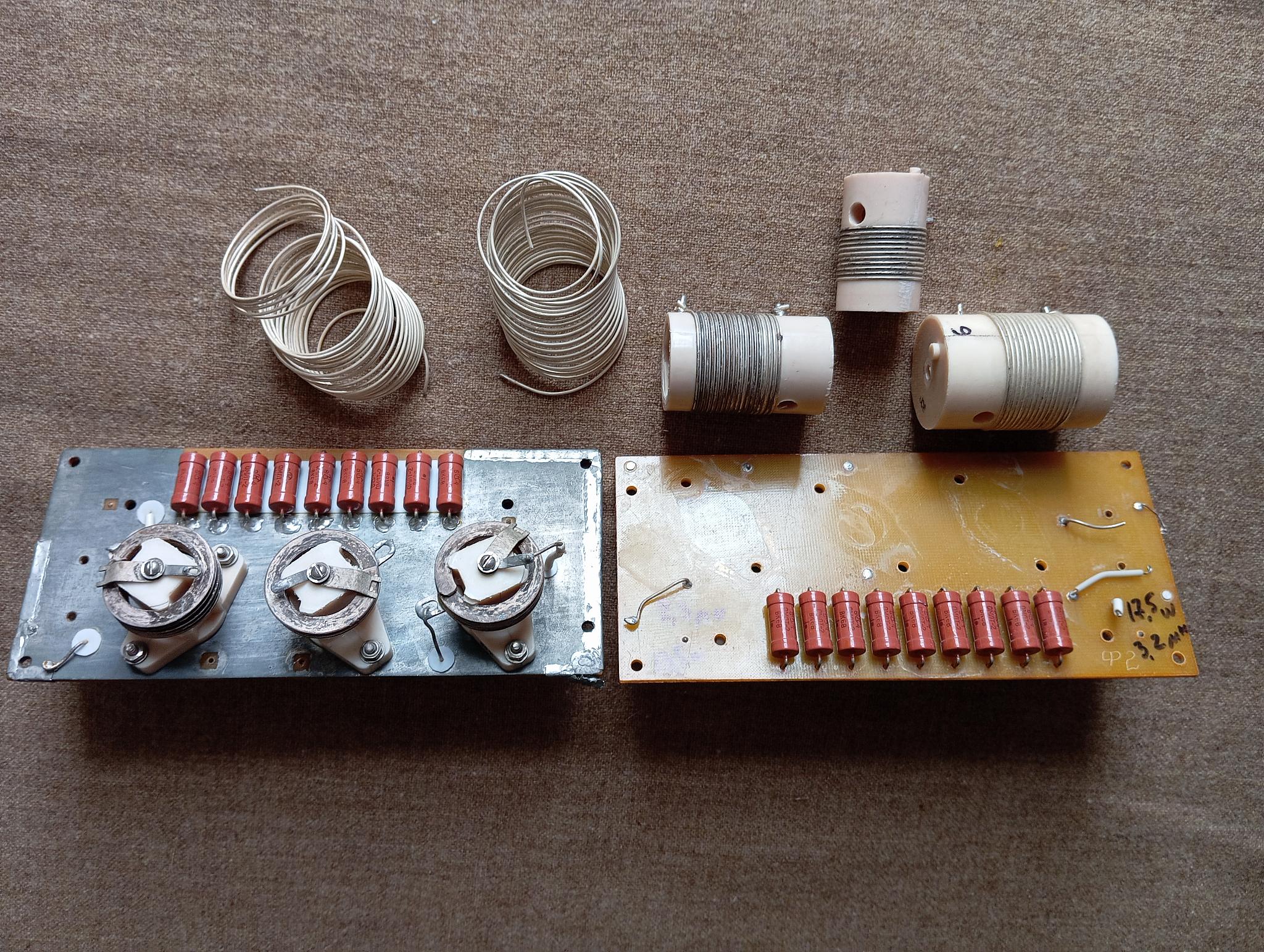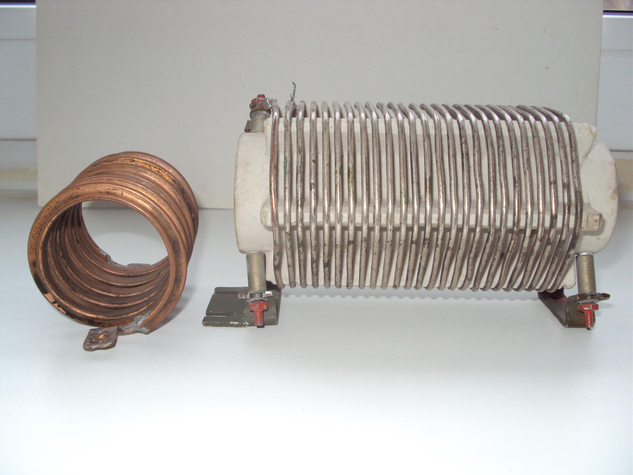 БрянскL1-мед. трубка 5 мм. 10 вит, Dнамотки=53 мм., L2-21 вит., провод 2, 7 мм., Dнамотки=71 мм., индуктивность=15 мкгн С1 от РБМ, С2 зазор 0, 7-0, 8 мм.