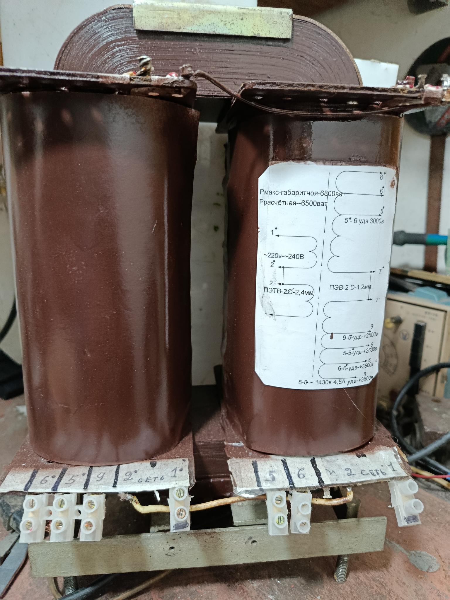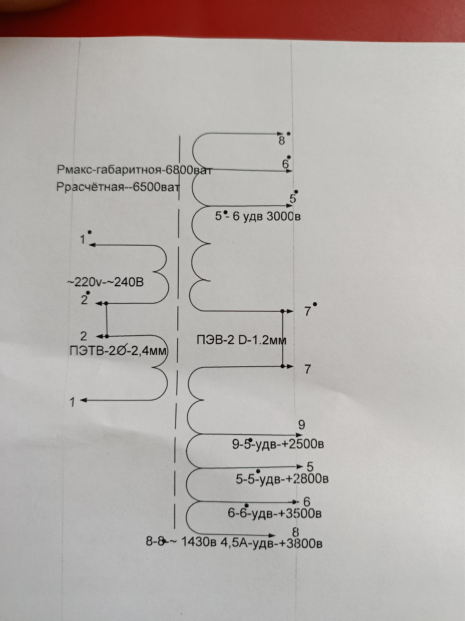 ВоронежПродам трансформатор для усилителя. Сетевая обмотка: провод 2, 25мм Вторичная 1, 2мм Схема удвоения. После выпрямления +3100в