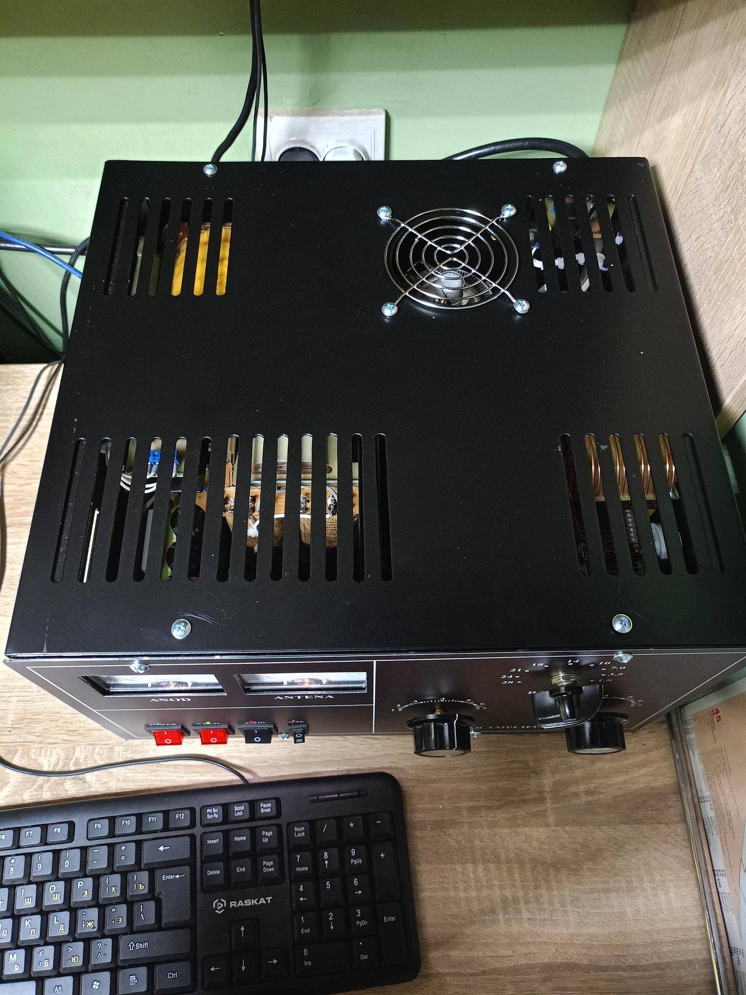 ОстрогожскПредлагаю КВ усилитель мощности на ГУ-81М. Выполнен но схеме с ОС в стальном корпусе от настольного ПК. 6 основных диапазонов. Анодный БП 3 кВ в отдельном корпусе, выполнен с большим запасом по мощности, рассчитанном для УМ на 2-х ГУ-81М, т. е. 2 кВт в антенне. По входу УМ установлены полосовые филь ...