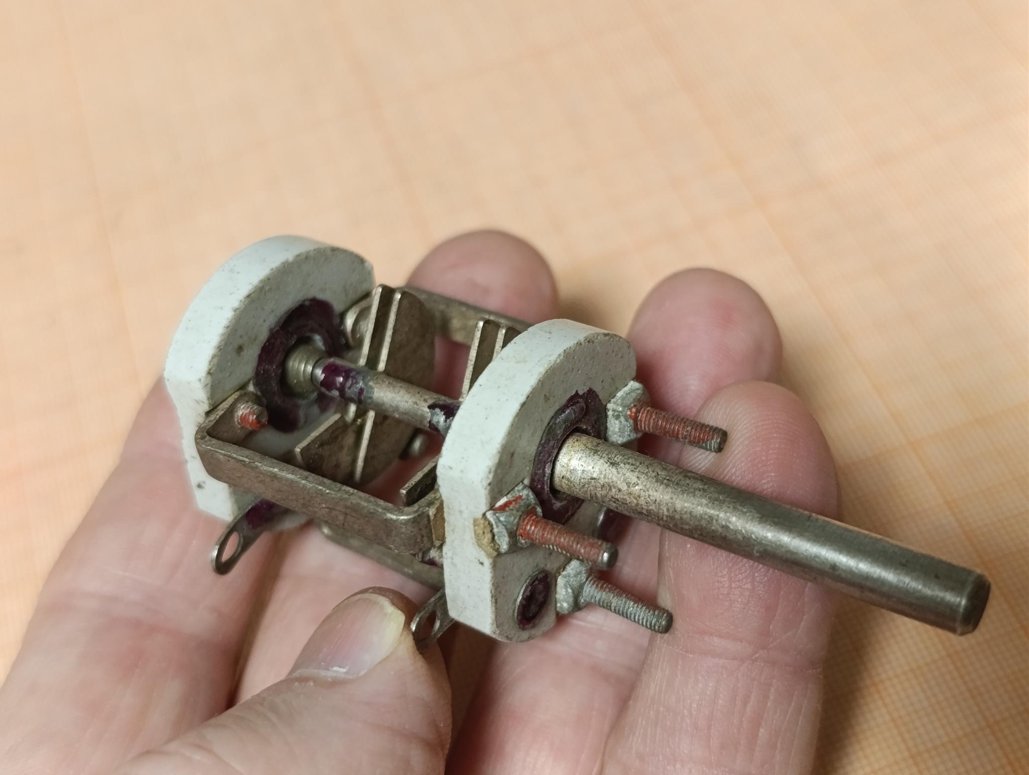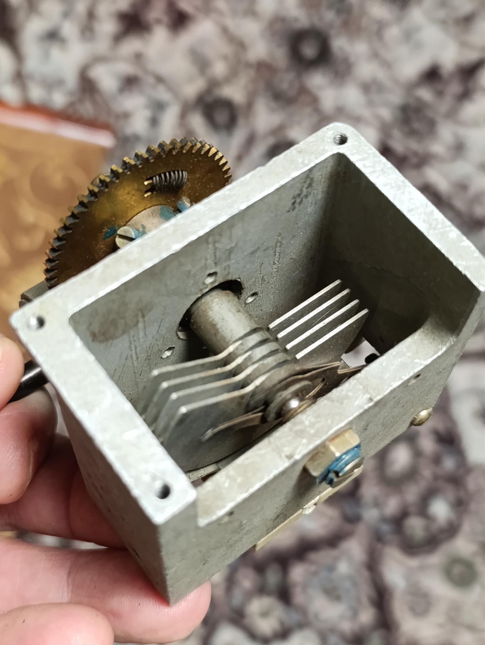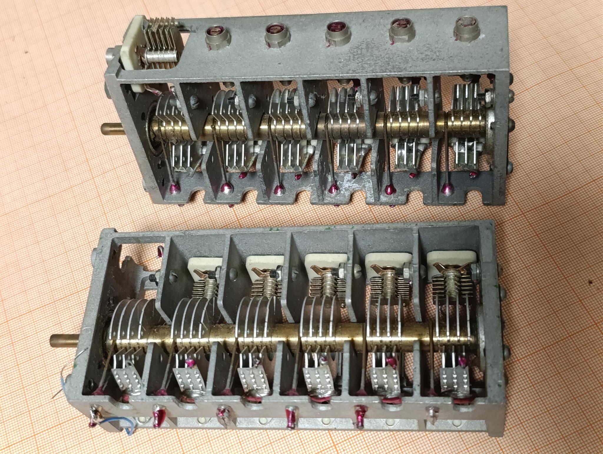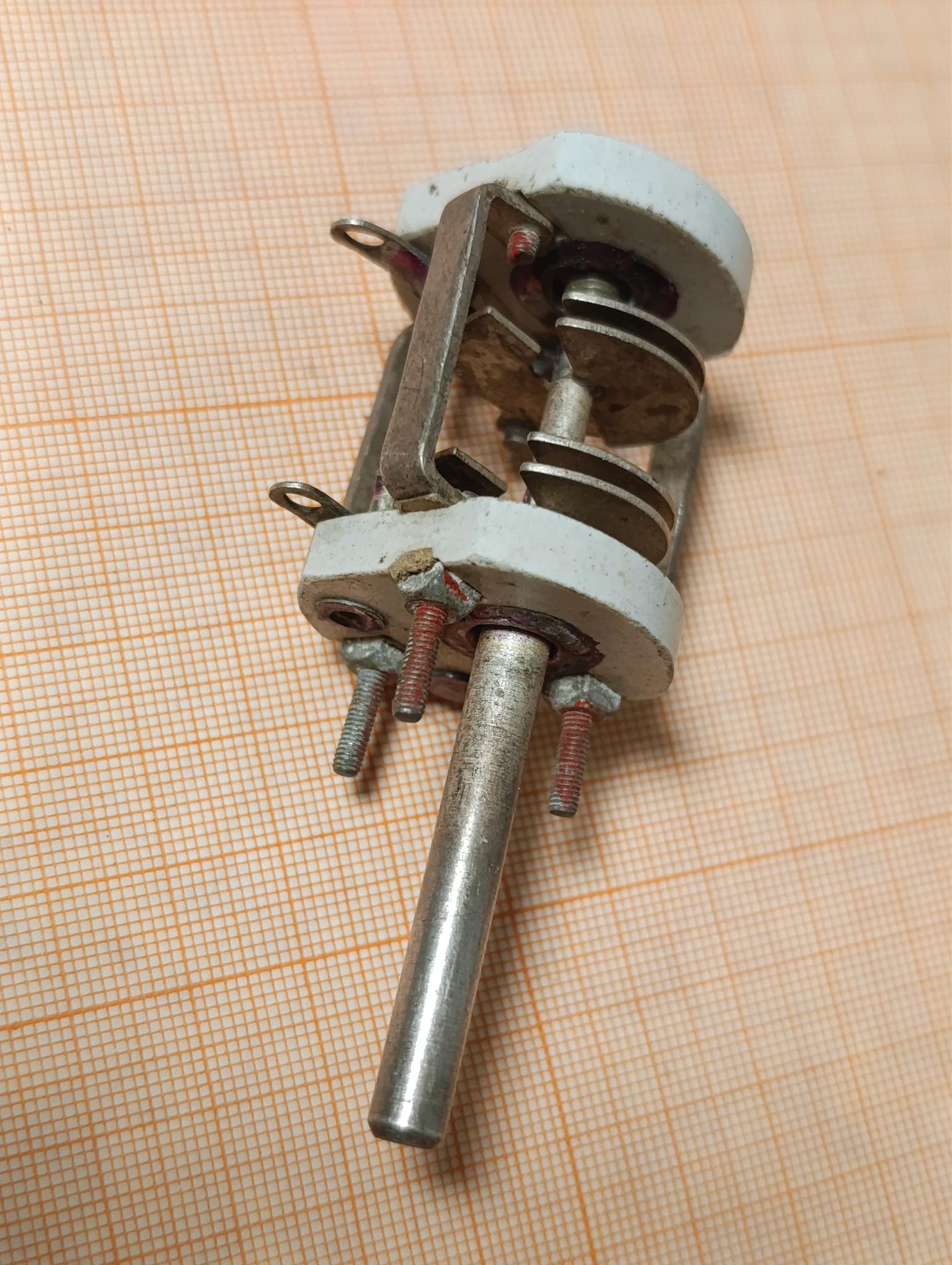 Волгодонсккпе на 5 секций статорные секции изолированы друг от друга роторные соединены по парно механического токосъема нет. емкость изменяется между секциями воздушным путем. Я на таком кпе собрал гпд на 6 диапазонов для трансивера, в корпусе этого-же кпе. вес-850грамм. пересылка почтой около 350 руб.