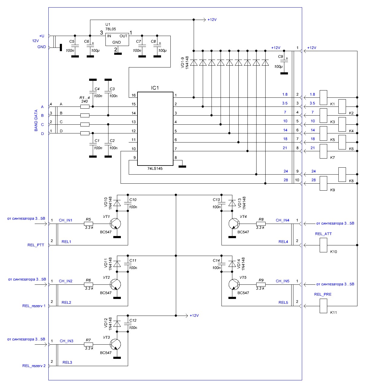 КореновскДиапазон частот: 1. 8 МГц - 30 МГц Размер: 114x89x51 мм Connections: 3xBNC или SO-239 для основной и вспомогательной антенны, а так же вход приемника. RCA-jack - сигнал PTT 5. 5*2. 1 мм для источника питания (плюс в центре) Необходим источник питания: 13. 8В (от 150мА и выше) При использовании ...