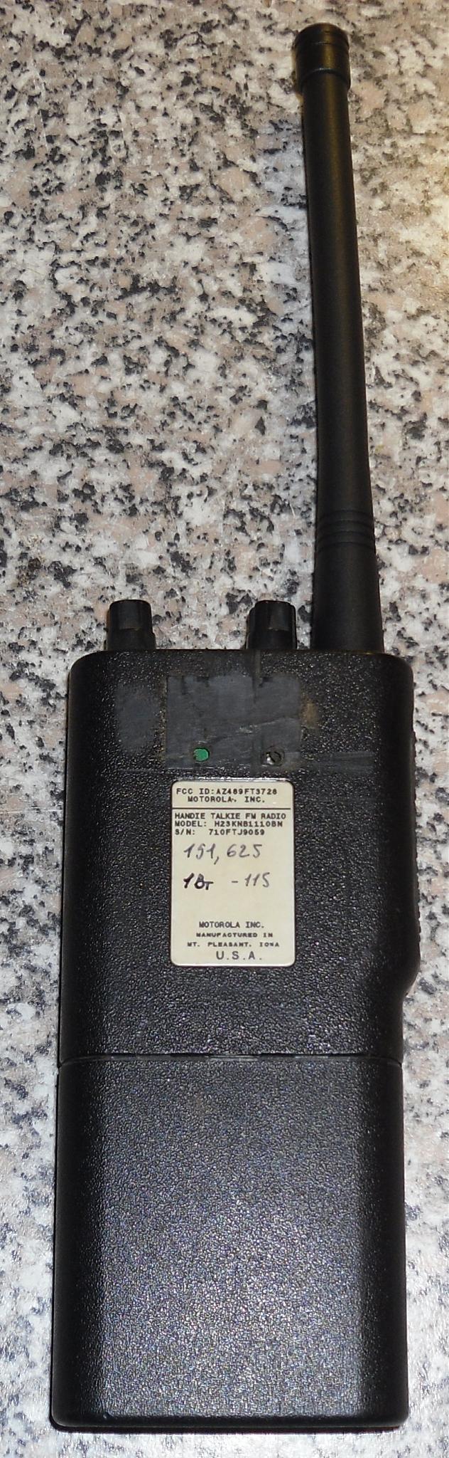 Старая редкая носимая радиостанция Motorola Radius P10 диапазона VHF, производство USA на одну частоту 151, 625мгц, 1 вт, питание от двух пальчиковых Lit-Ion 14500 на 3, 7в аккумуляторов установленных в колодочку удобно достать и зарядить внешним зарядным, антенна новая, вверху всего два регулятора ...