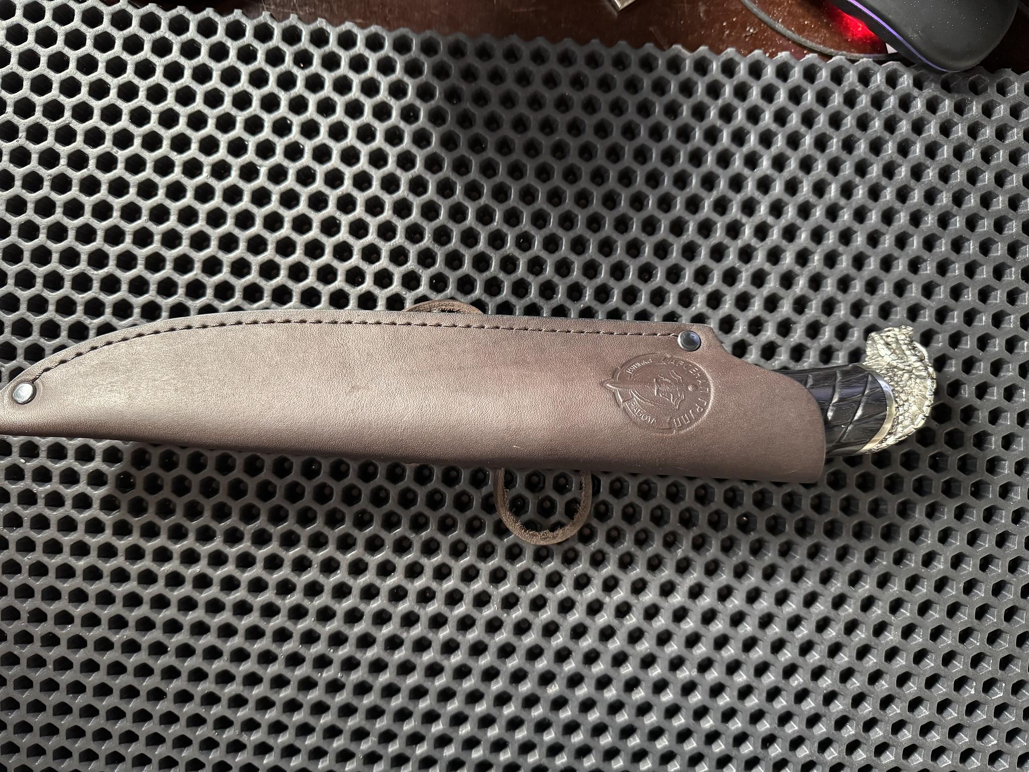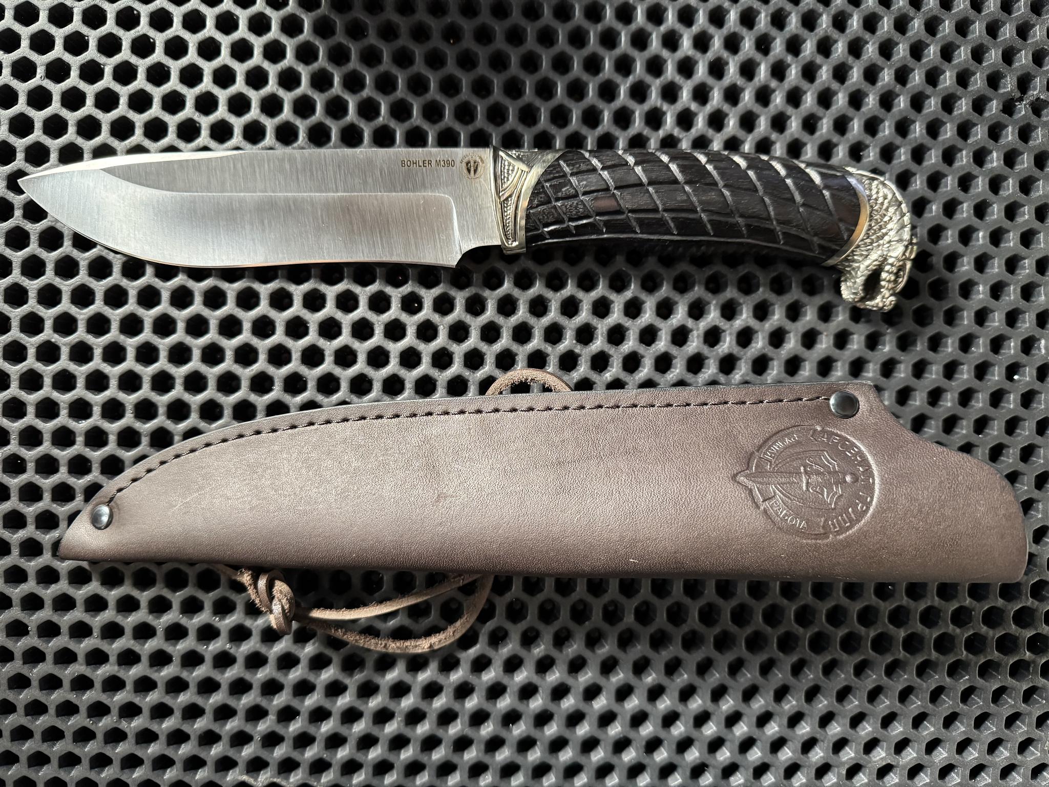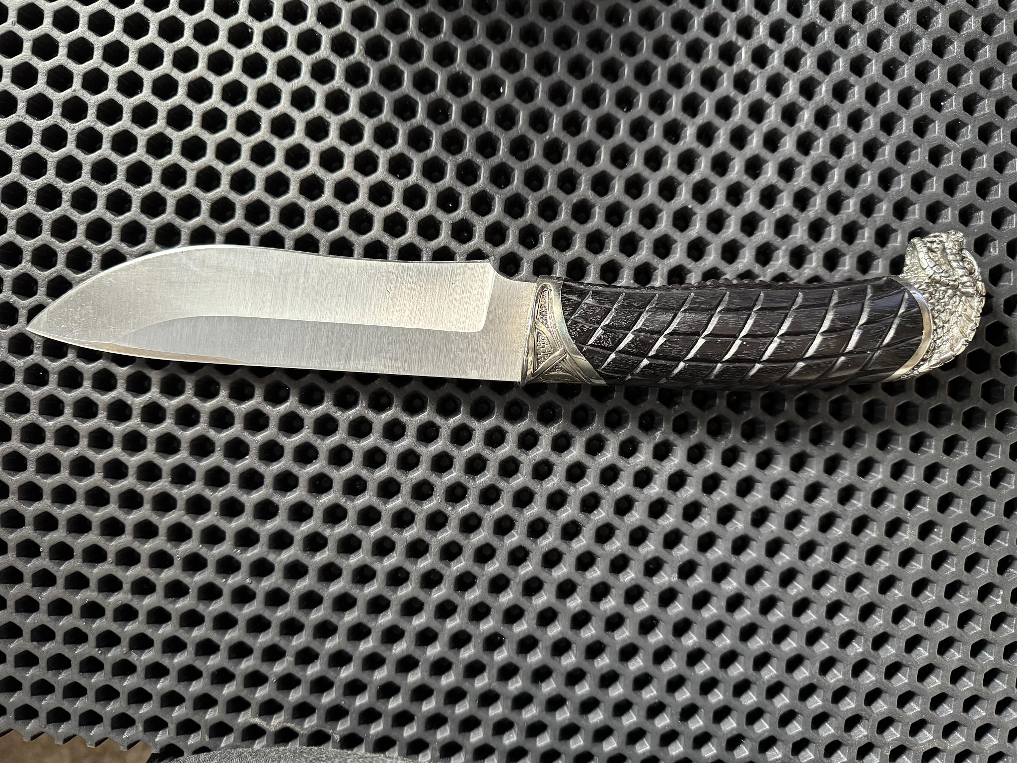 КондровоНож "Беркут", сталь М390, рукоять граб резной, литье мельхиор